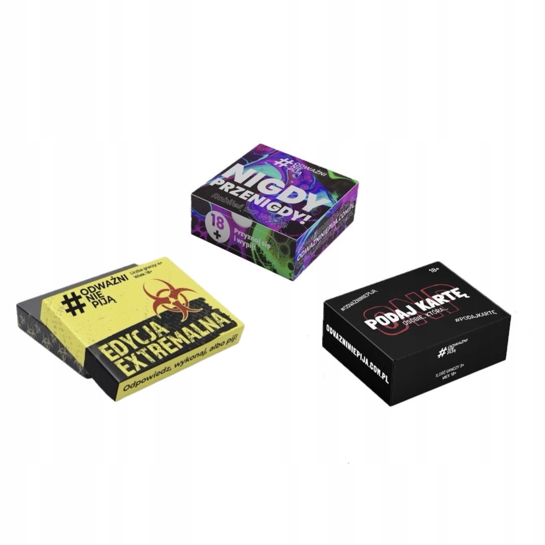 Мы подготовили для вас наши трибестселлера из серии игр «Храбрый, не пей» в одном акционном пакете за 249 злотых,99! Удивляйте своих друзей, узнавайте их получше и получайте массу удовольствия! Хорошее развлечение гарантировано! Закажите прямо сейчас!