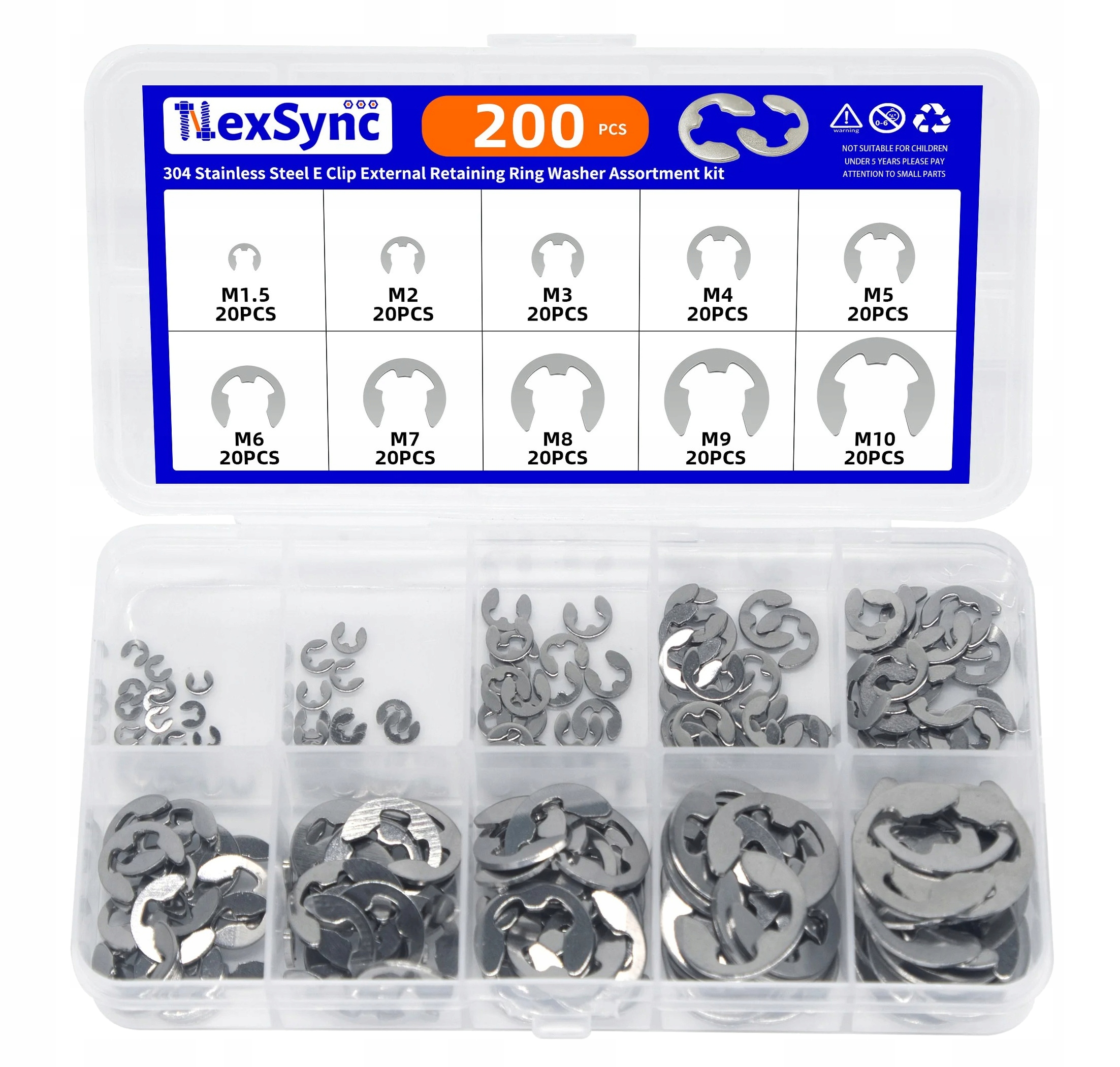 Этот набор состоит из 200 стопорных колец типа E, изготовленных из высококачественной нержавеющей стали. Этот материал гарантирует коррозионную стойкость, долговечность и эстетичный внешний вид. Стопорные кольца E незаменимы во многих приложениях, таких как механика, автомобилестроение, электроника > или ремонт дома. Благодаря различным размерам, входящим в комплект, они идеально подходят для работы с шурупами разного диаметра, обеспечивая надежную и стабильную безопасность.