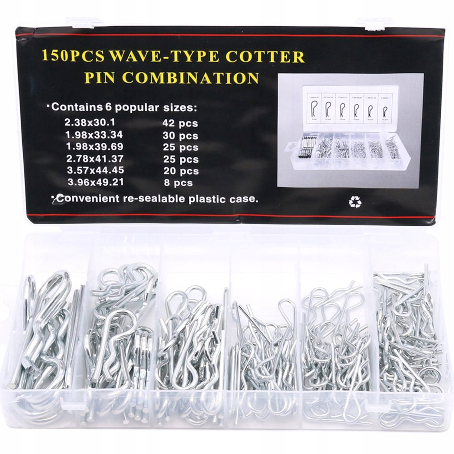 Практический набор пружинных обертков, идеально подходящий для применений в семинарах, услугах и домашних DIY. Они используются для защиты элементов от скольжения с роликов, оси, стебля и винтов. Набор содержит 150 графиков штифта в разных размерах, упорядоченных в удобном пластиковом сортировке.