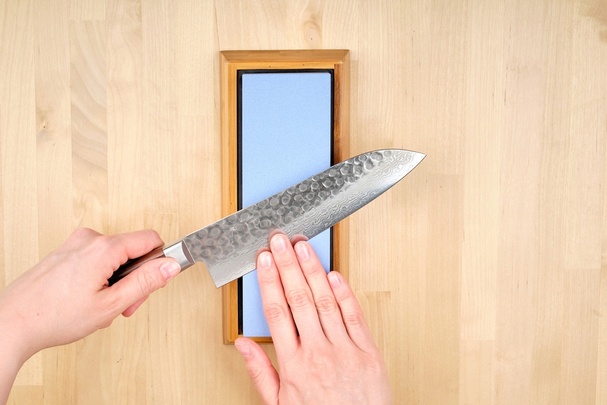 - С помощью стороны с зернистостью 3000 слегка заточите под углом 10–30 градусов в течение 15 минут.