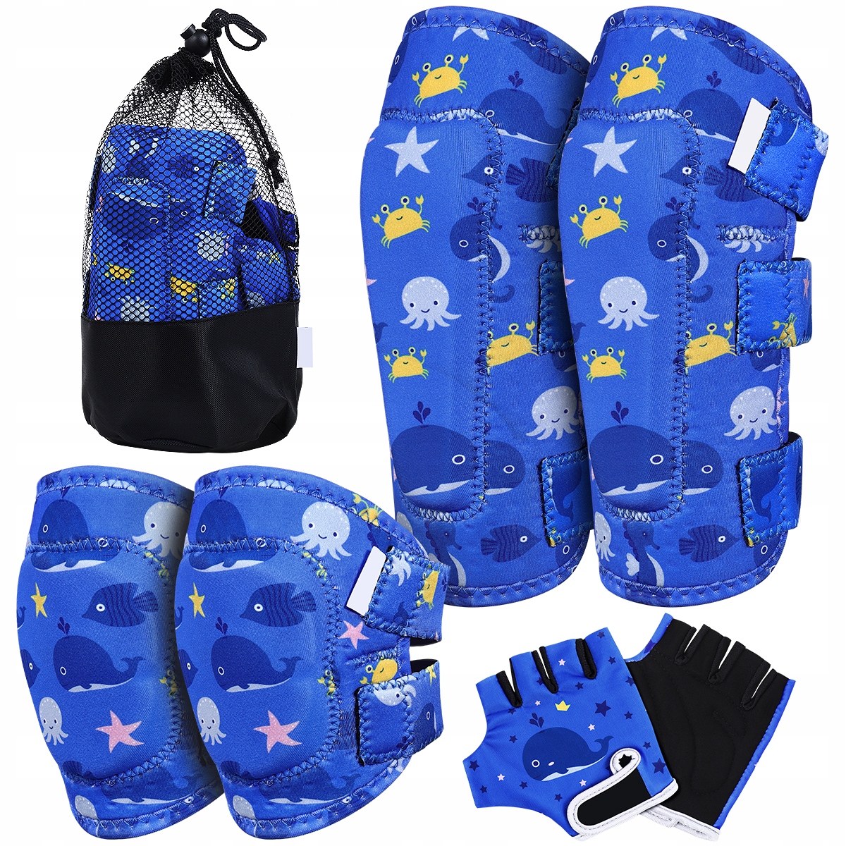 - Защитники колена и локтя: один размер. Подходит для детей в возрасте от 3 до 10 лет.