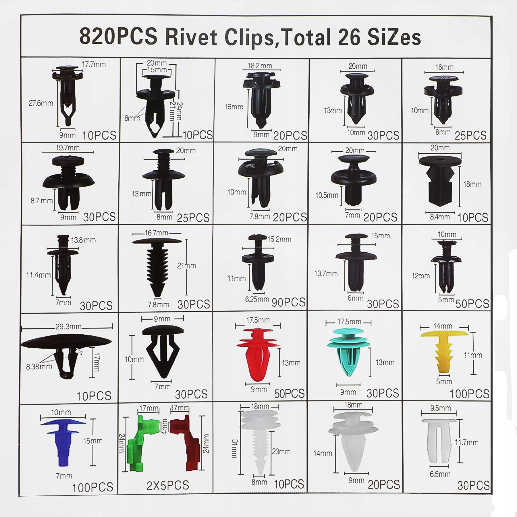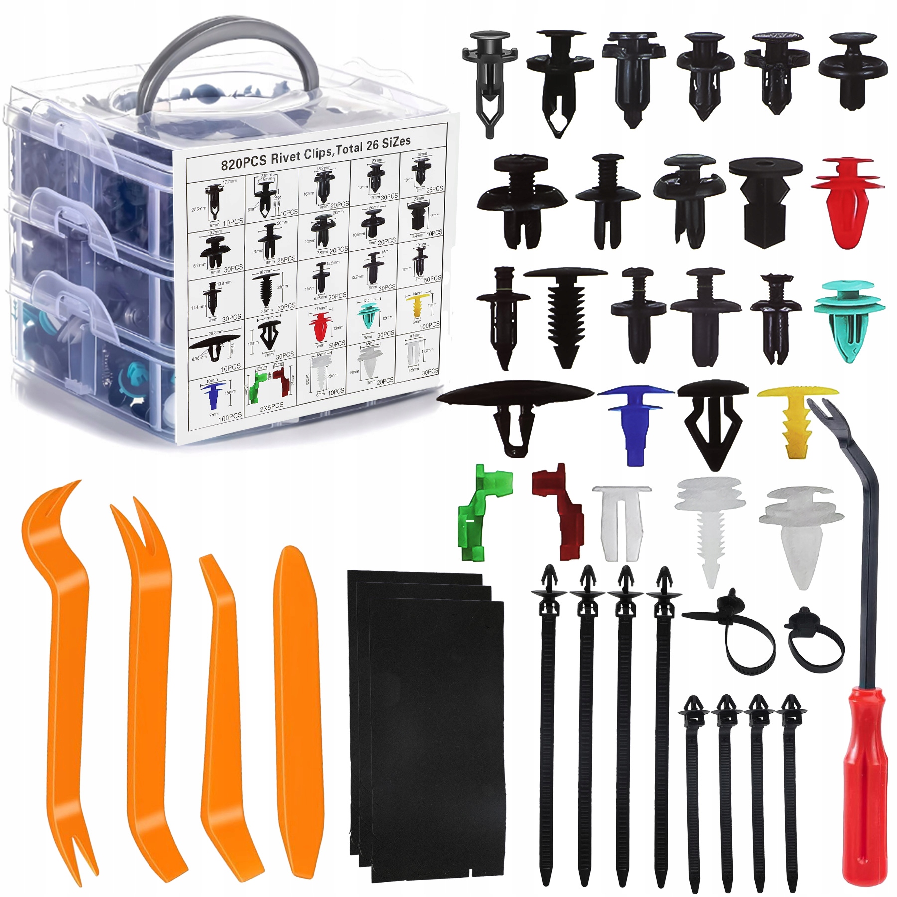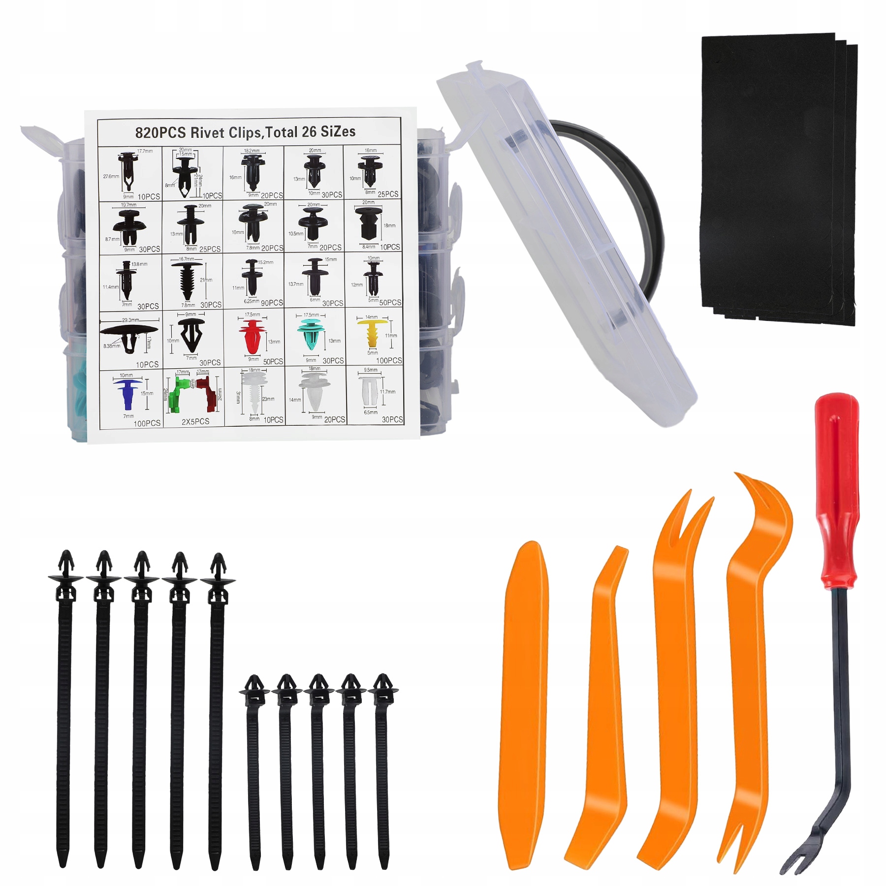 НАБОР ИЗ 820 АВТОМОБИЛЬНЫХ ЗАЖИМОВ В СПЕЦИАЛЬНОМ КЕЙСЕ + 5 инструментов для разборки + 10 кабельных стяжек + 90 губчатых подушечек