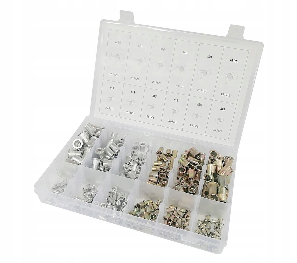 НАБОР ЗАКЛЕПОЧНЫХ ГАЙОК M3-M10 MIX, 300 ШТ. ЗАКЛЕПОЧНЫЕ ГАЙКИ