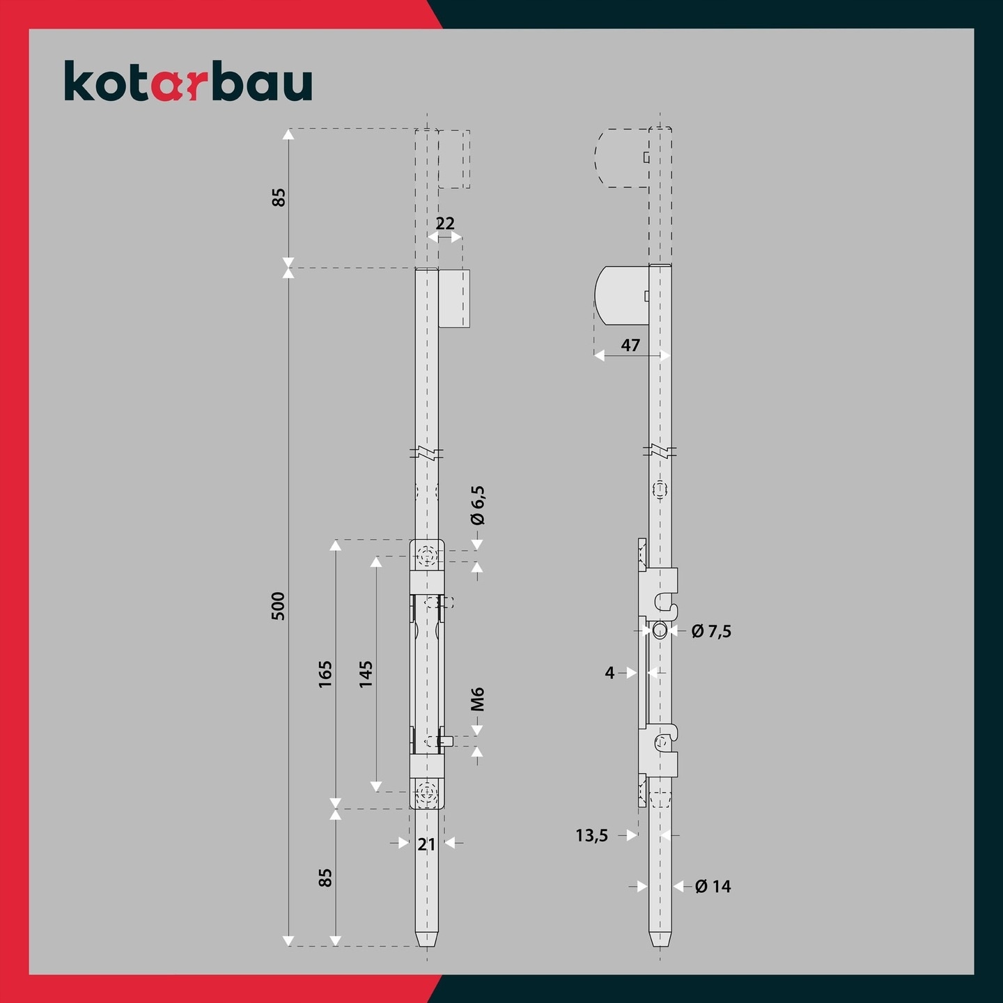 - Дверной засов длиной 500 мм имеет ширину основания 21 мм, что делает его подходящим для многих помещений.