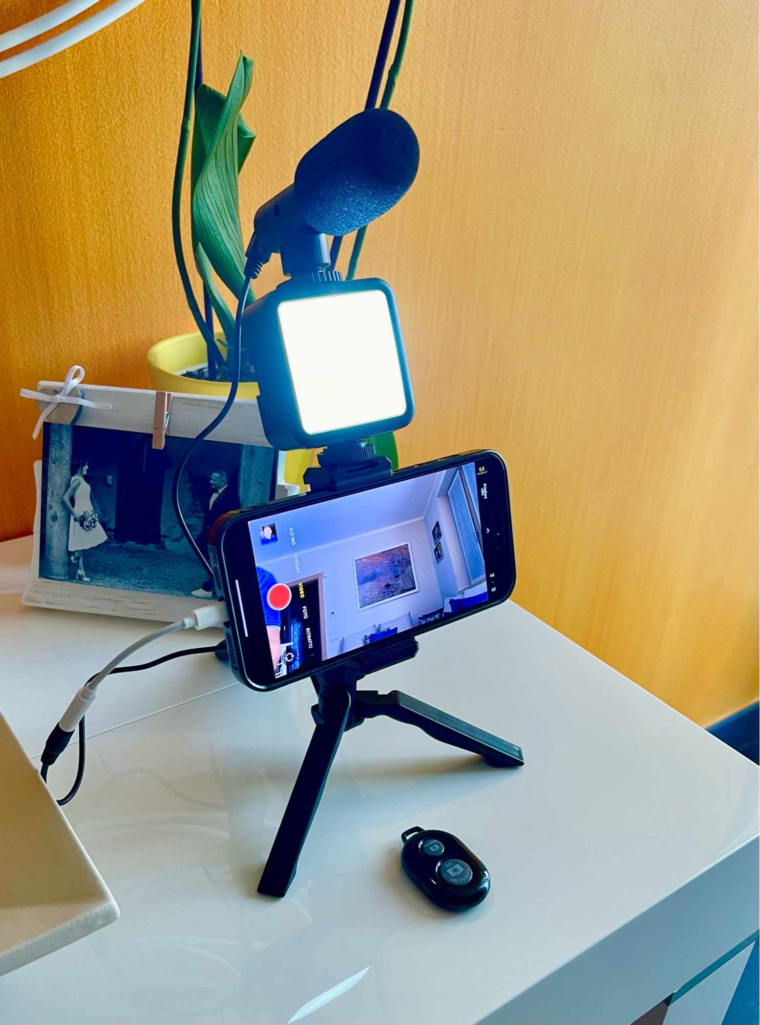 Хотите, чтобы ваши записи выглядели более профессионально? Хотите хорошо выглядеть во время корпоративных видеоконференций? Аксессуар, который может вам пригодиться, — штатив для смартфона с отдельным микрофоном и светодиодной подсветкой. Поместите свой телефон вертикально или горизонтально и транслируйте видео! Используя штатив и пульт дистанционного управления Bluetooth, вы также сможете делать стабильные и четкие фотографии.