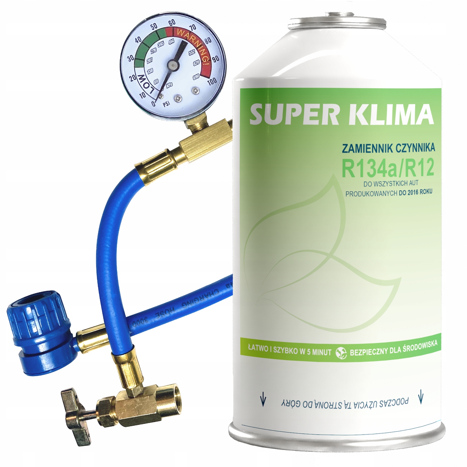 170 грамм SuperKlima эквивалентны 453 г хладагента R134a или 510 г хладагента R12. Если у нас машина, в которой должно быть 500 г, достаточно 1 банки, но если объем превышает 500 г, следует приобрести набор SuperKlima XL, в который входят 2 банки.