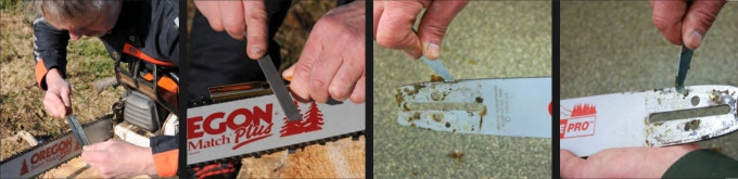 - Один плоский напильник с деревянной ручкой и один шаблон для регулировки высоты ограничителя глубины в звеньях цепи.