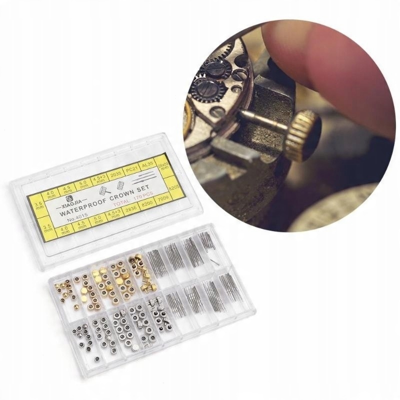 Комплект для замены заводной головки часов из нержавеющей стали. Посвящается людям, занимающимся ремонтом часов.