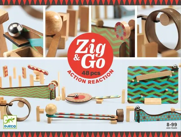 Набор Zig&Go — 48 элементов Djeco . Набор для изучения принципов действия и противодействия.Цепная реакция: постройте собственную трассу, чтобы отдельные элементы запускали цепную реакцию различных движений и действий. Некоторые начинают медленно, но внезапно ускоряются, а другие издают звуки.