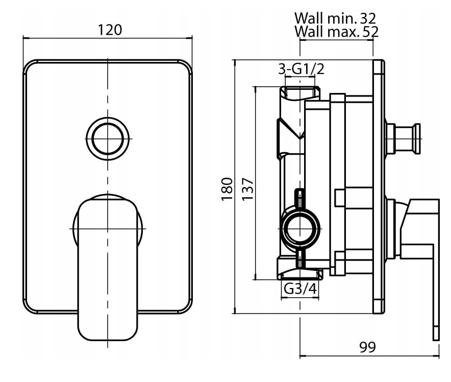 Минимальная глубина в стене, необходимая для установки смесителя: 7,5 см p>