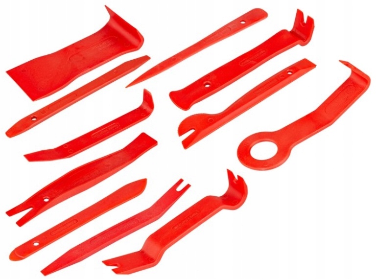 Специализированные съемники для демонтажа планок, зажимов и обивки автомобиля. Они имеют специальные профили, позволяющие использовать рычаги при демонтаже штифтов обивки. Они не оставляют стойких царапин на обивке, что ухудшает эстетику салона автомобиля.