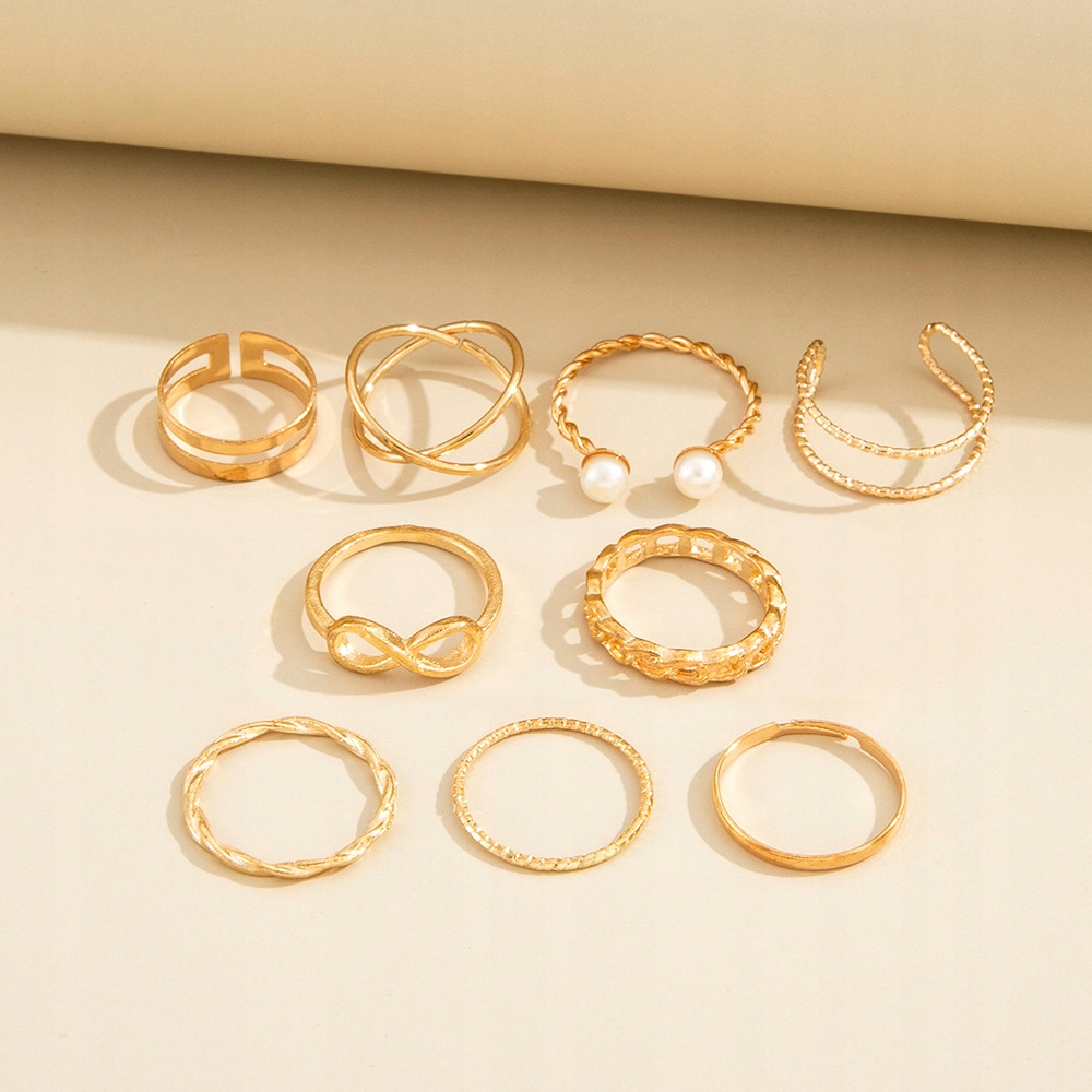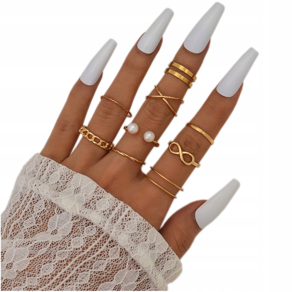 Красивый и элегантный комплект колец. Они идеальны в качестве стильного подарка. Полностью сделаны с вниманием к мельчайшим деталям, они тонко подчеркнут нежность женской руки. Этот неподвластный времени нежный мотив придется по вкусу каждой женщине. В комплект входят 9 колец. Их можно носить по отдельности или все вместе.