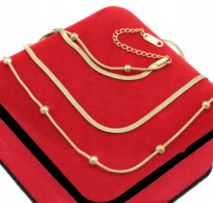 Золотой комплект из трех серег, браслета и колье-змеи с шариками из хирургической стали.