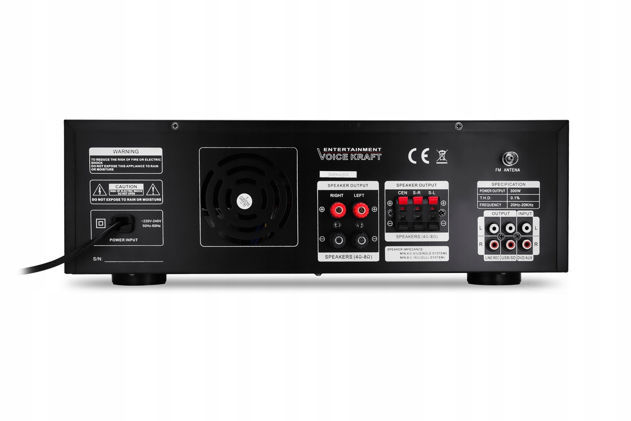 Усилитель имеет вход для любой внешней радиоантенны и вентилятор охлаждения. .