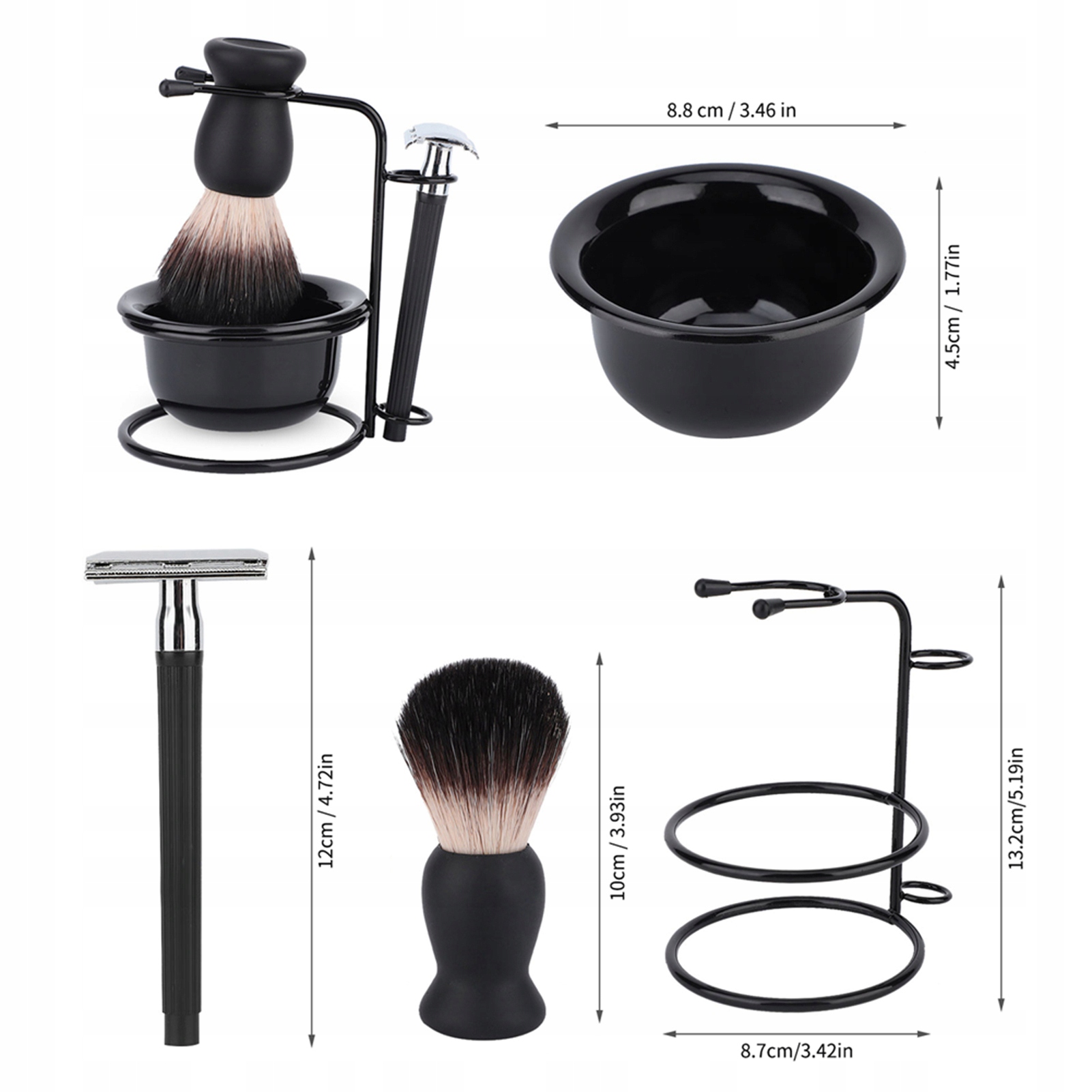 В этот набор для бритья входят безопасная бритва, щетка для бороды, мыльница и подставка для щетки. Чаша изготовлена из резинового пластика, прочного и практичного. С подставкой удобно хранить миску и щетку и поддерживать их в чистоте.