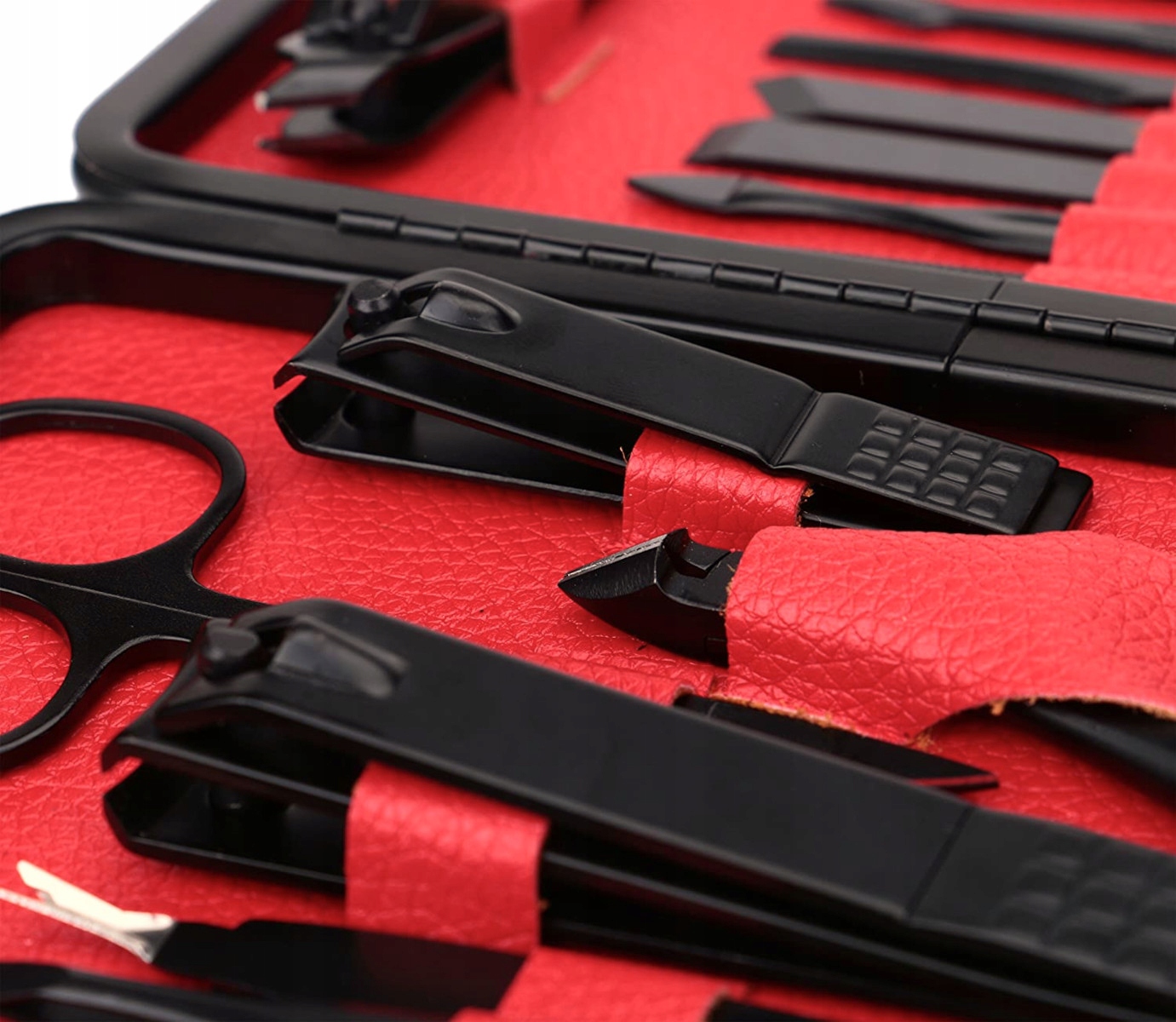Весь маникюрный набор состоит из 16 элементов, элегантное и прочное исполнение каждого инструмента вместе с футляром обеспечивает длительное время использования.