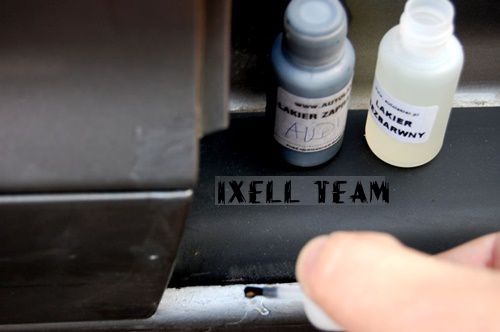 Промойте отремонтированные места ремувером и после затирания нанесите полученный ретуширующий лак - BASE.