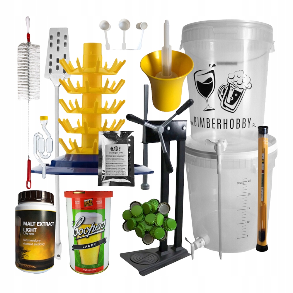 Набор содержит все необходимые элементы для приготовления пива в домашних условиях. 23 литра домашнего пива.