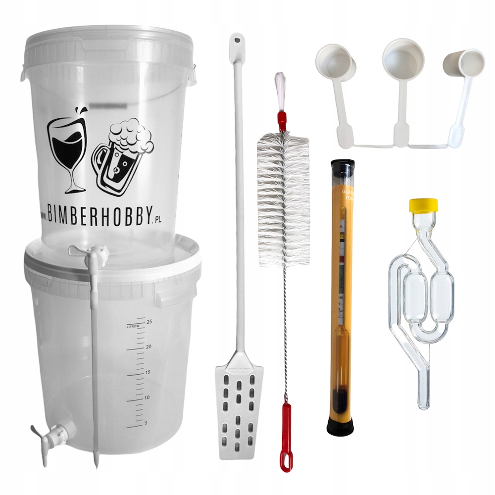 - Бродильный аппарат на 33 литра (с отверстиями для трубки и сливной кран) для основного брожения.