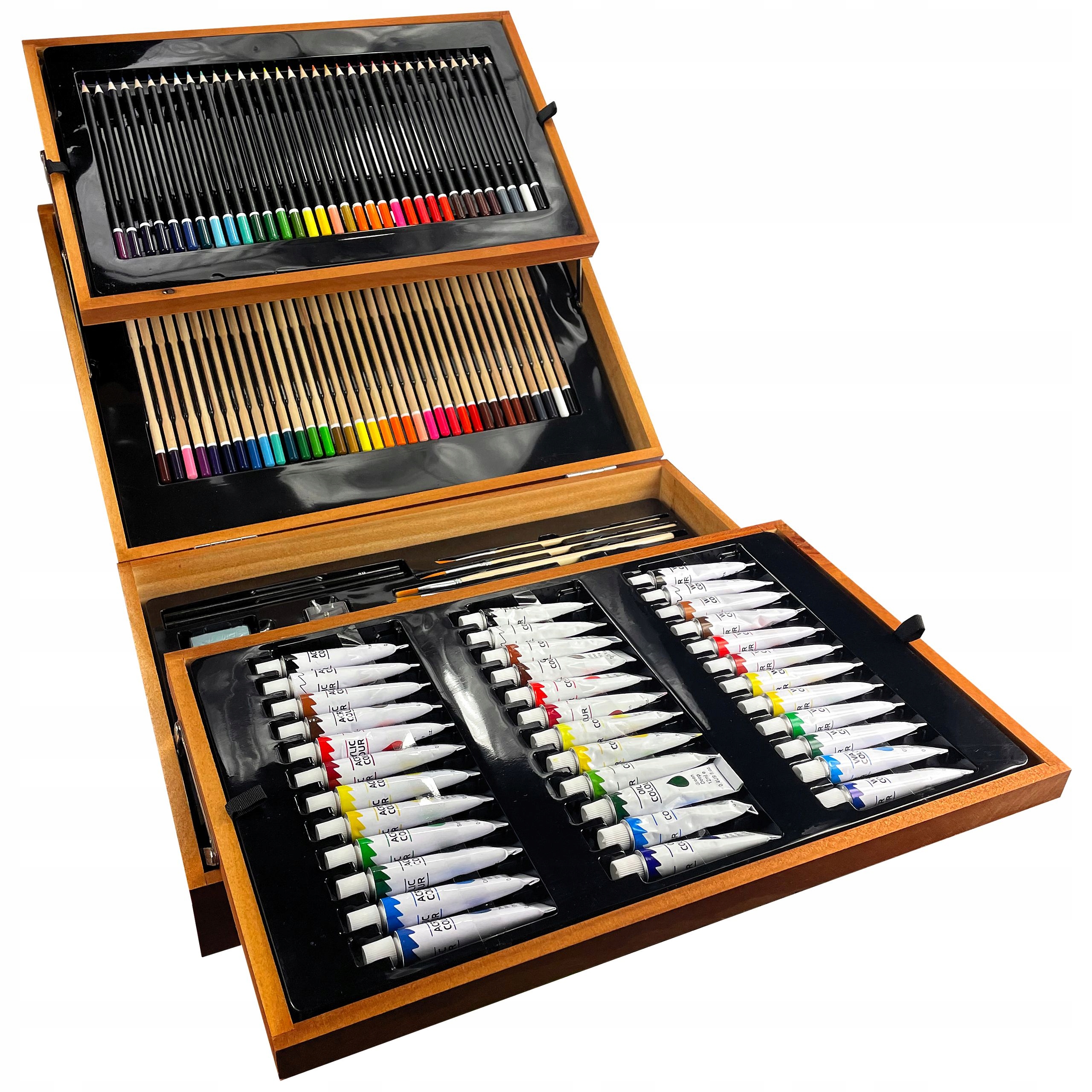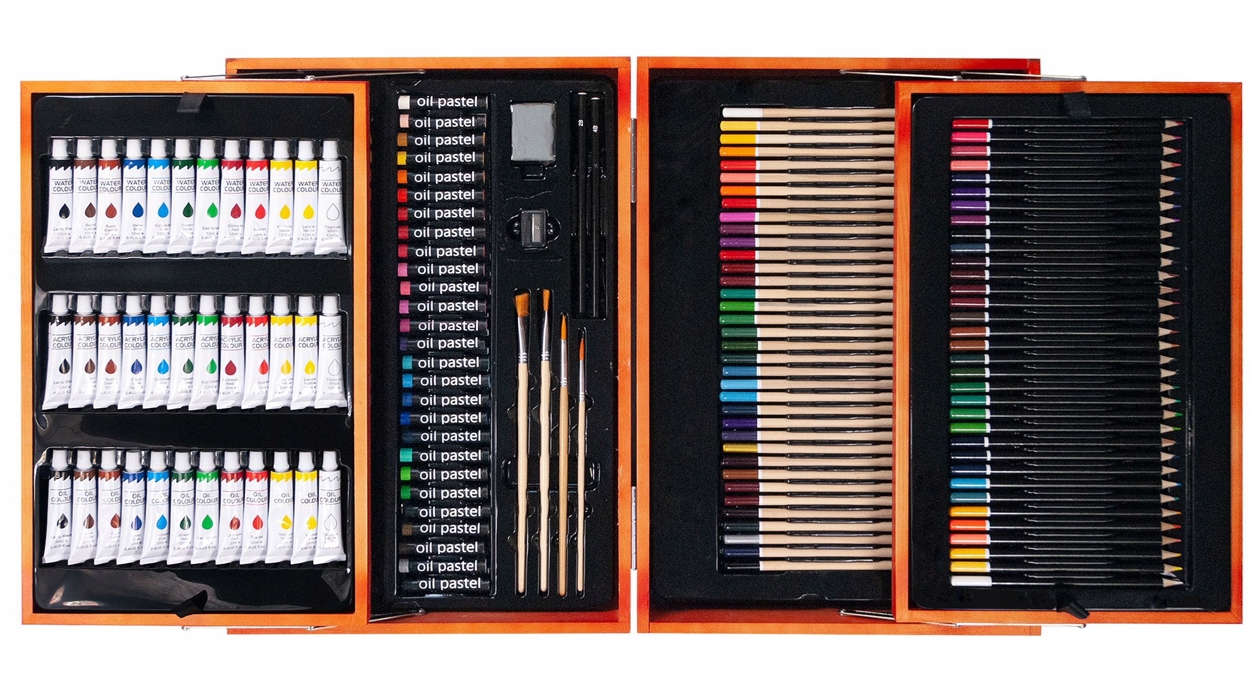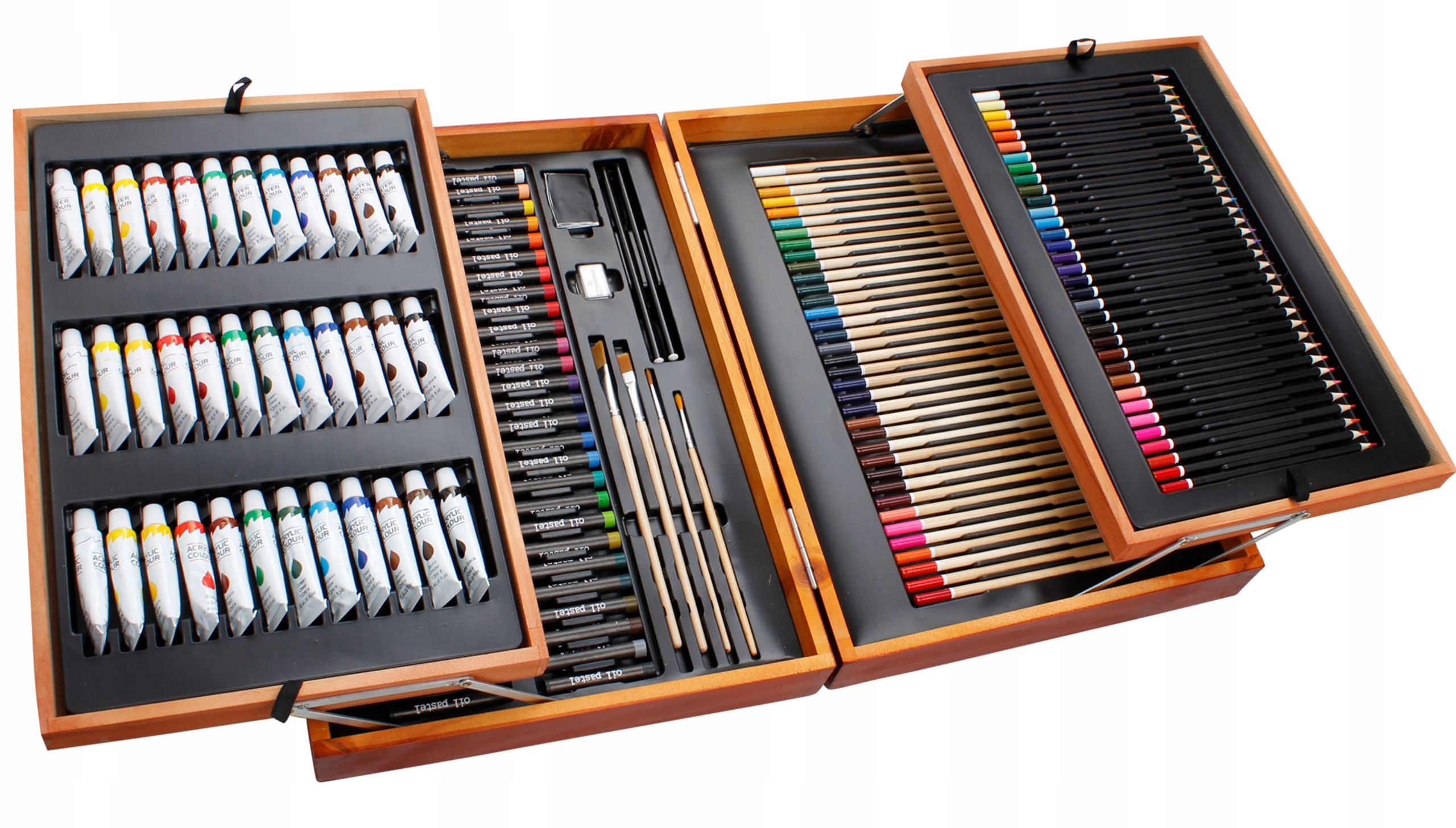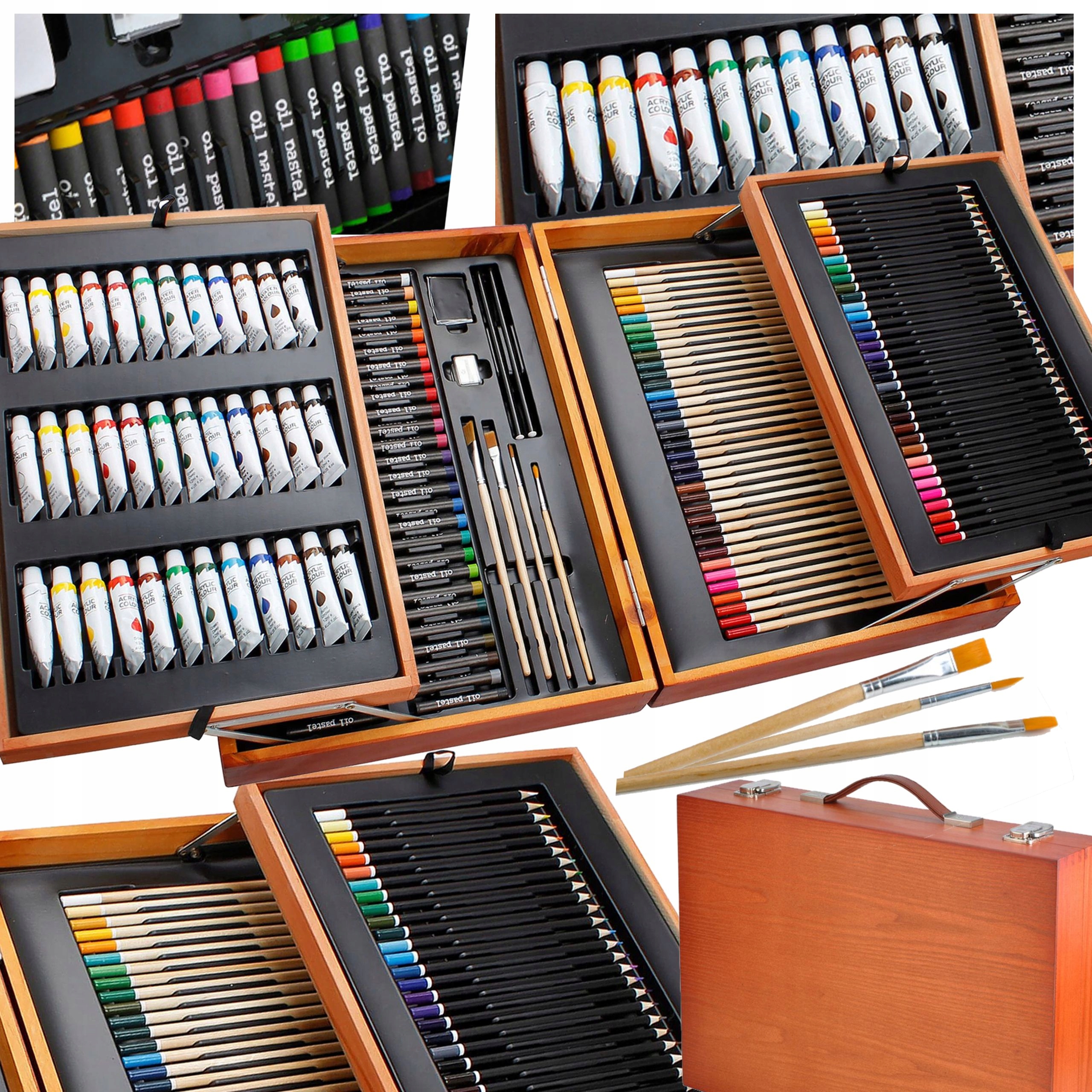 Арт-набор «Премиум» 168 предметов – отличный подарок для детей, подростков, взрослых, начинающих художников и художников. Это полный арт-набор. Все это помещено в портативный компактный деревянный чемодан. Его легко носить с собой и хранить в чемодане.