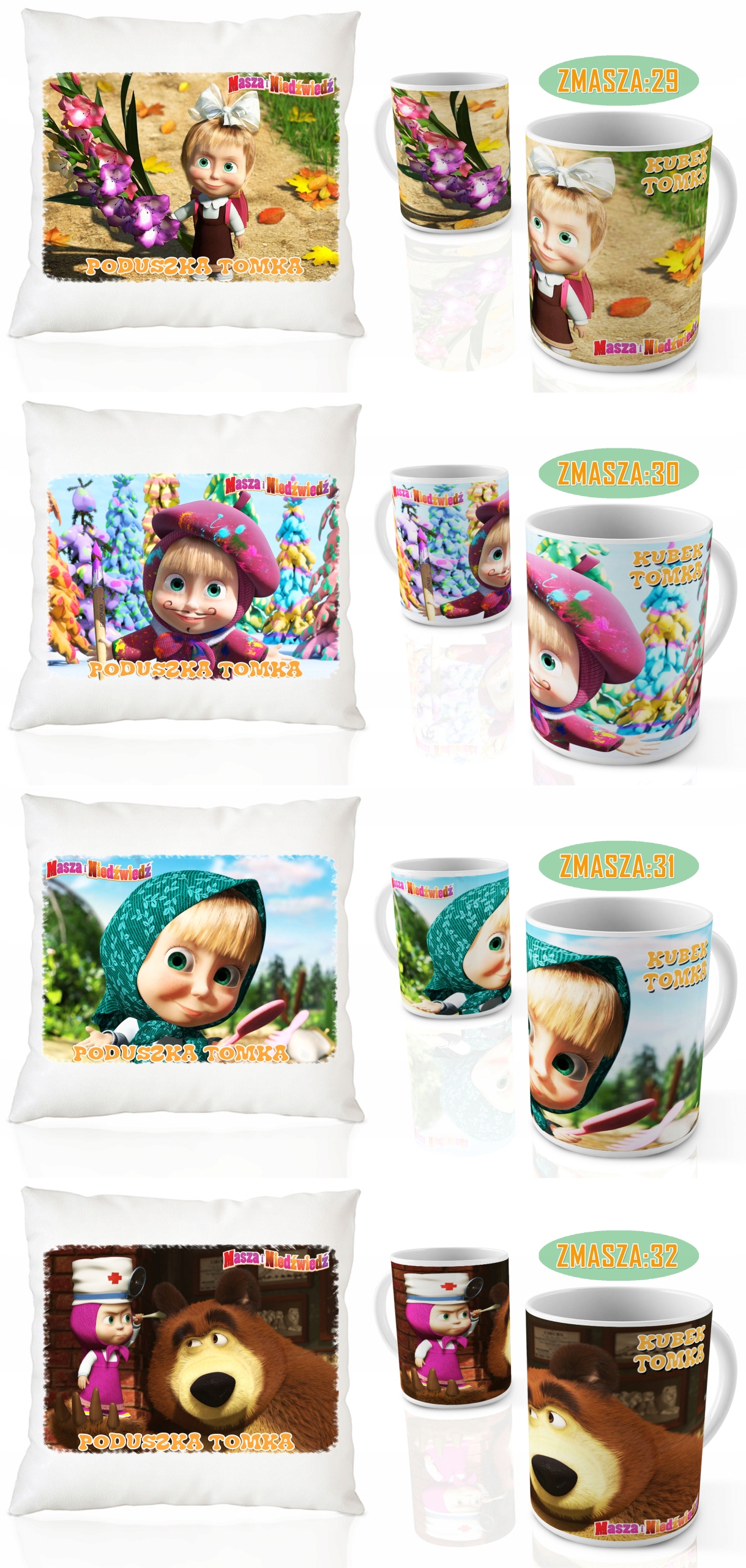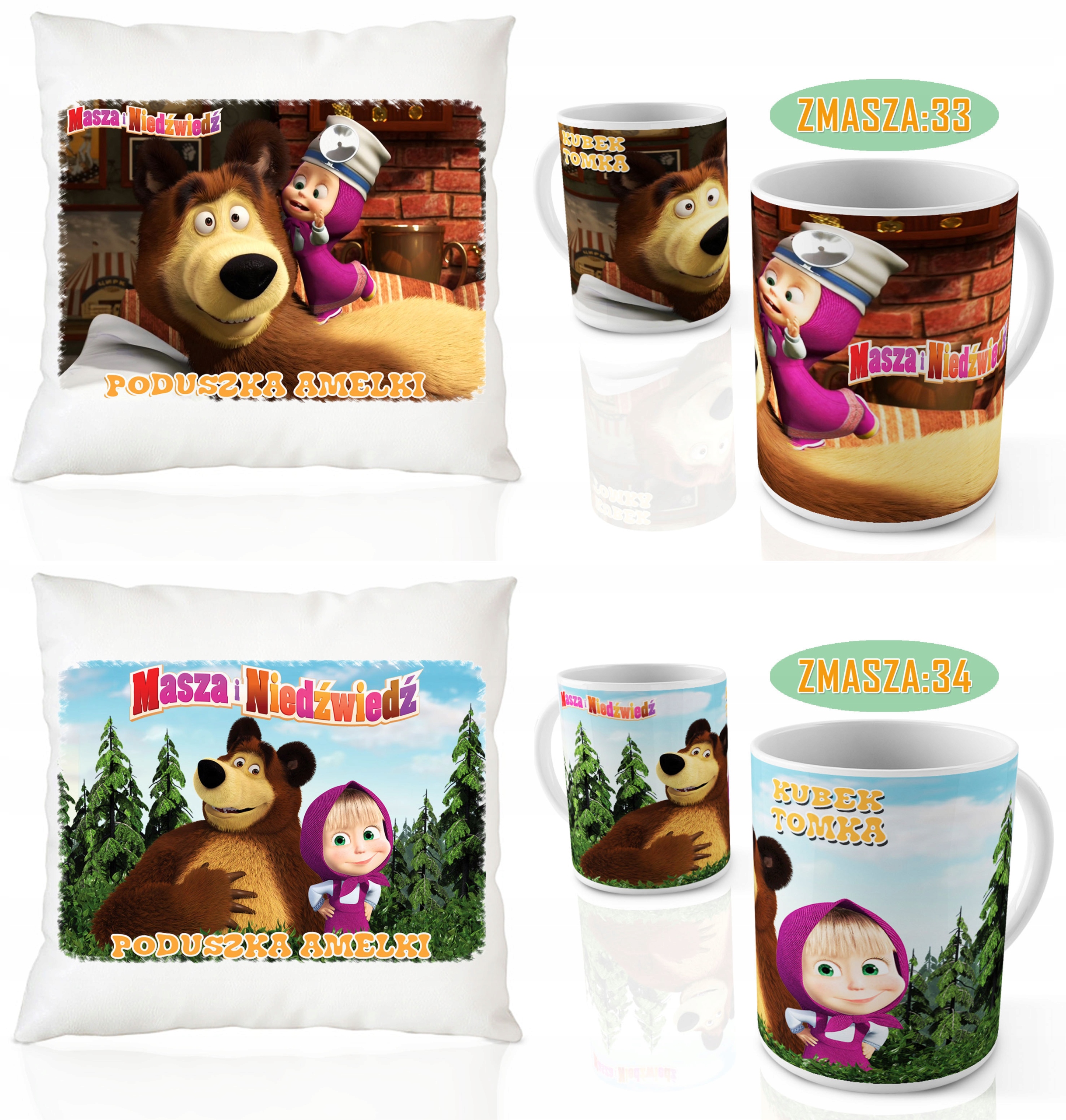 НАБОР КРУЖКА + ПОДУШКА МАСА І ВЕДМІДКА + ІМ'Я