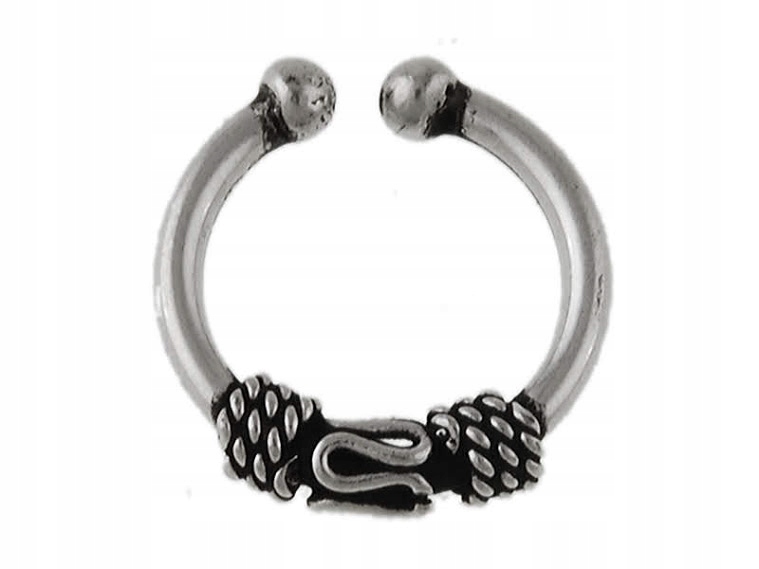 Серьга из серебра 925 пробы, серьга надевается на верхнюю часть ушной раковины и затягивается так, что надежно держится на ухе. К носу тоже подходит, перегородка фальшивая, серебро затемненное (античный стиль)