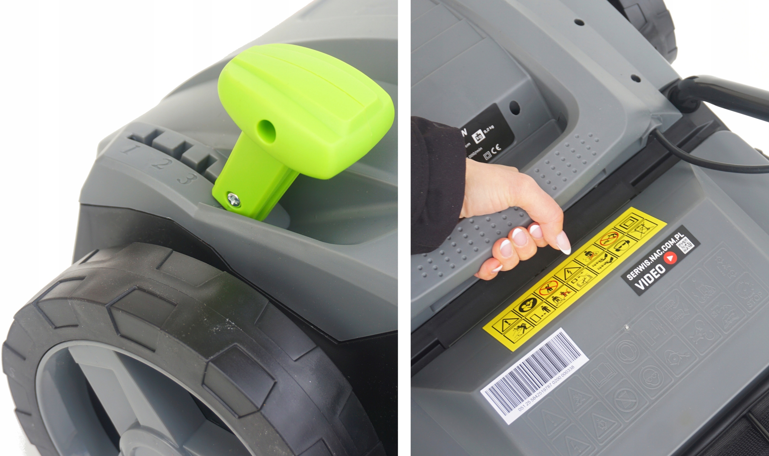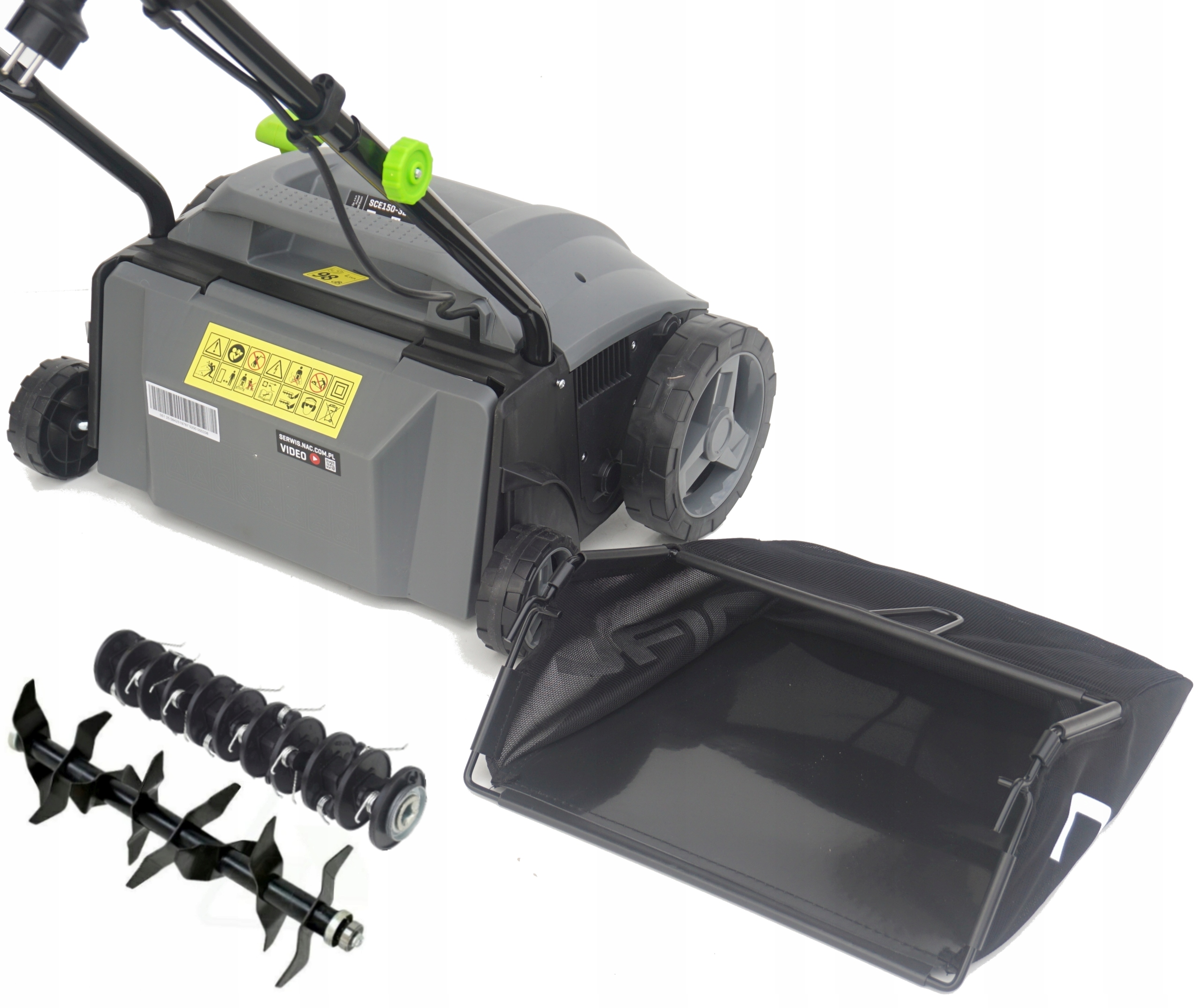 Благодаря электрическому двигателю, вы можете позаботиться о газоне особенно тихой и экологически чистым образом. ролик для вертимиляции , на котором есть режущие ножи и с роликом аэрации , на которых находятся стальные драки.