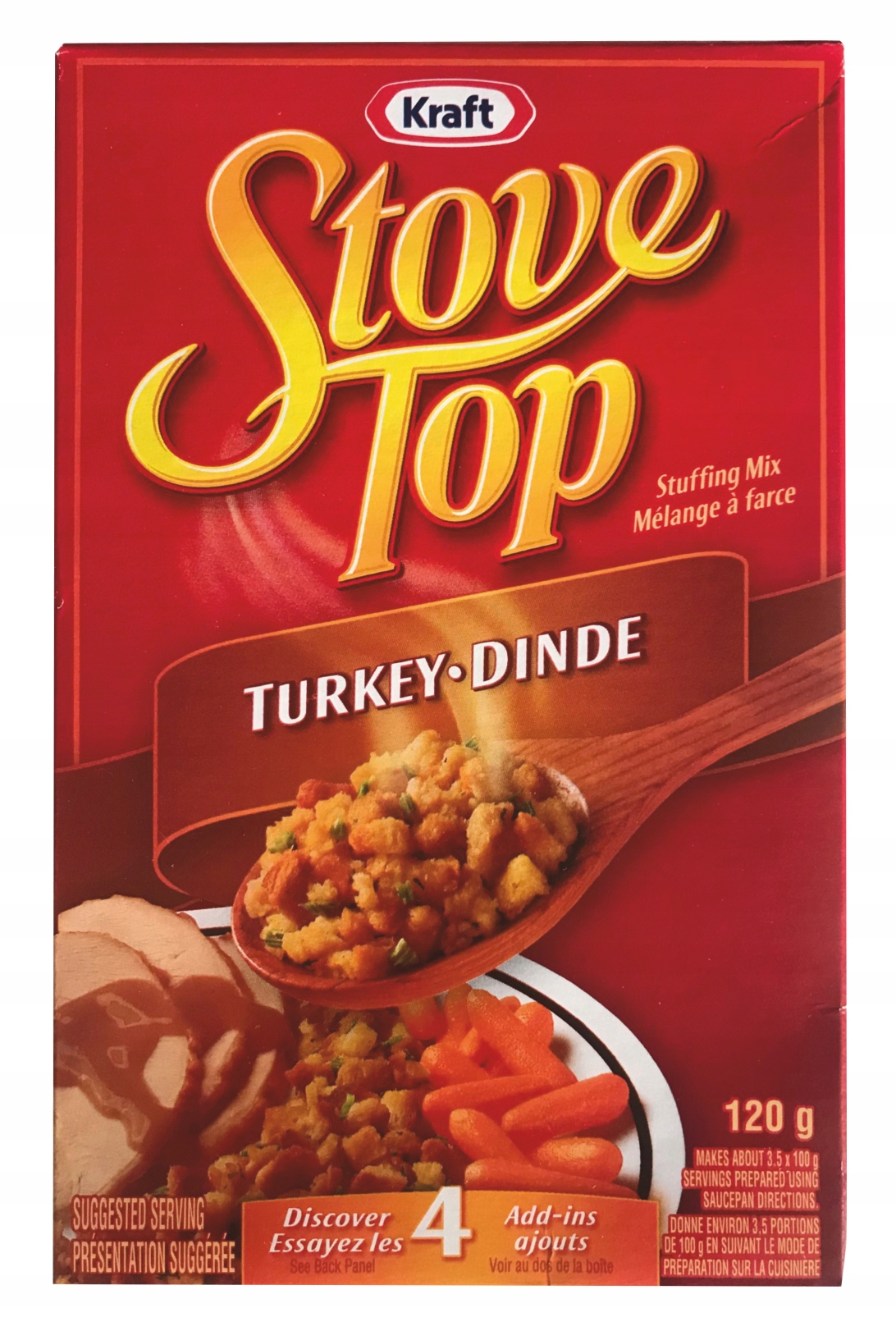 Сделайте каждый семейный ужин особенным с помощью смеси для начинки индейки Kraft Stove Top. Смесь свежеиспеченных кусочков хлеба и настоящего бульона из индейки является идеальным сочетанием для птицы и обеспечивает мягкую, пушистую текстуру в каждой порции. В каждой упаковке находится сухая, предварительно приправленная смесь для начинки. Просто добавьте воду и сливочное масло или маргарин, и начинка будет по вкусу так, будто ее приготовили с нуля! Его также можно легко приготовить в микроволновой печи.