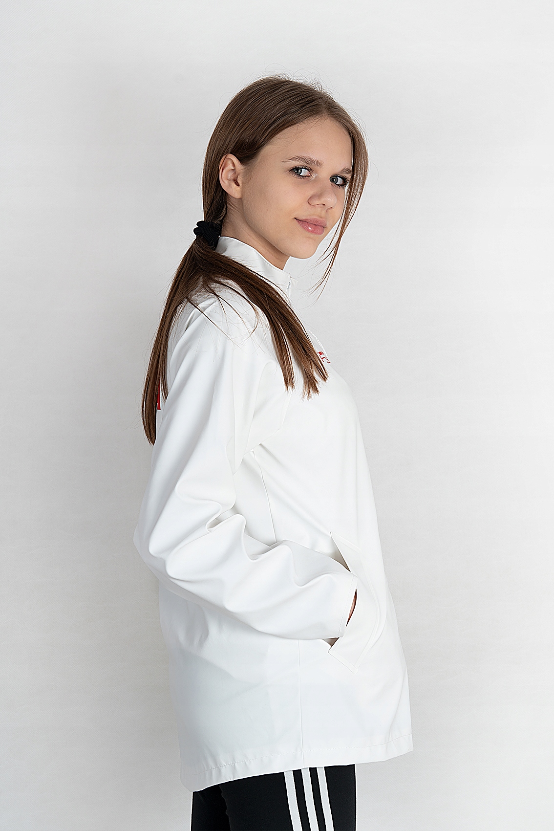 Модный, элегантный и практичная куртка-дождевик. Предназначен для спортсменов и болельщиков, особенно в представительских целях. Пользователи оценят застежку-молнию, два боковых кармана и манжеты на рукавах. Для лучшей вентиляции на кокетке имеется отверстие, отделанное изнутри нежной сеткой. Спереди на груди размещен государственный герб и логотип бренда, отличающие изделие, а сзади большая надпись POLSKA.