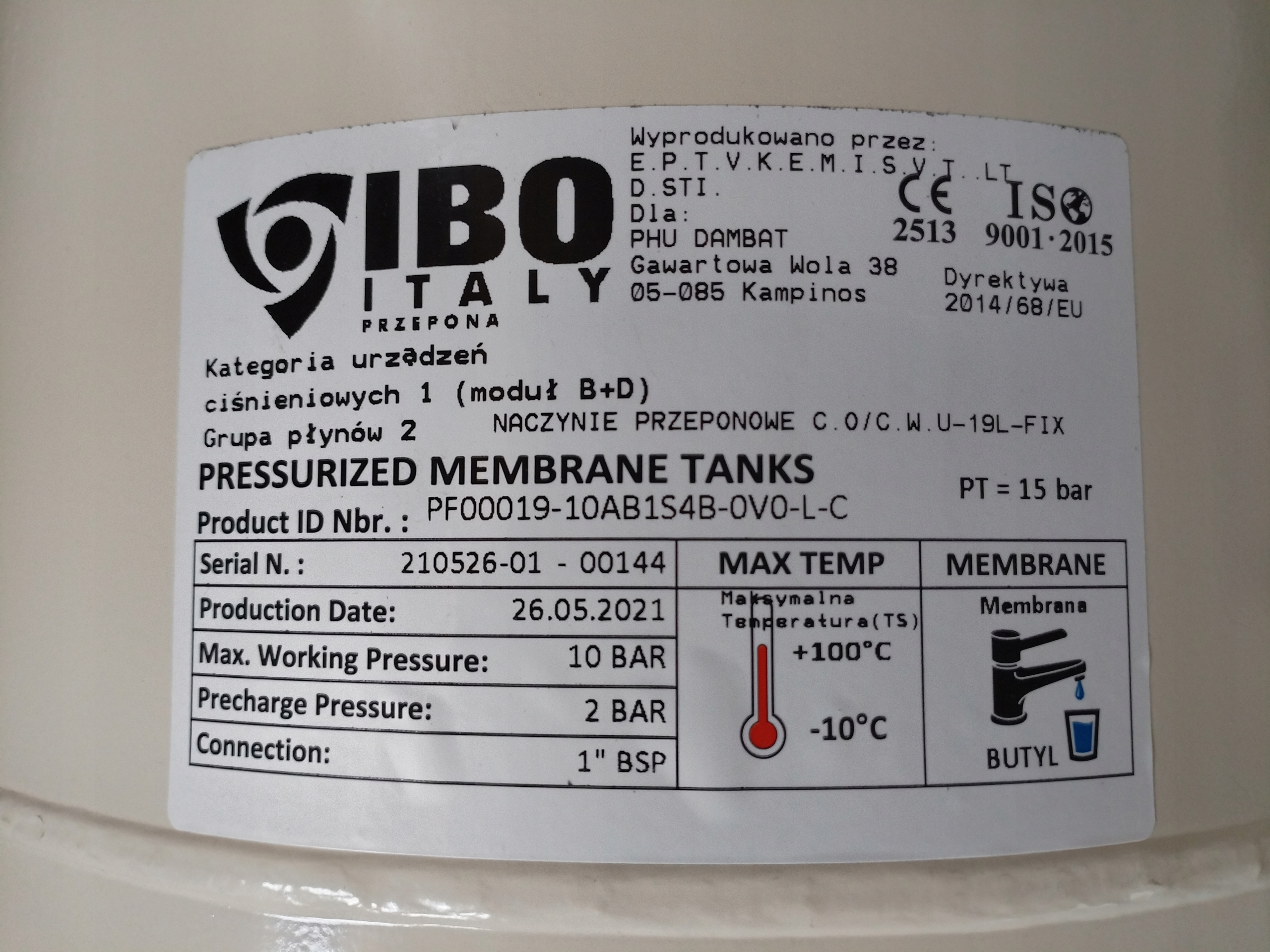 NACZYNIA PRZEPONOWE FIX MEMBRANA CO/CWU 19L IBO ITALY FIX #44
