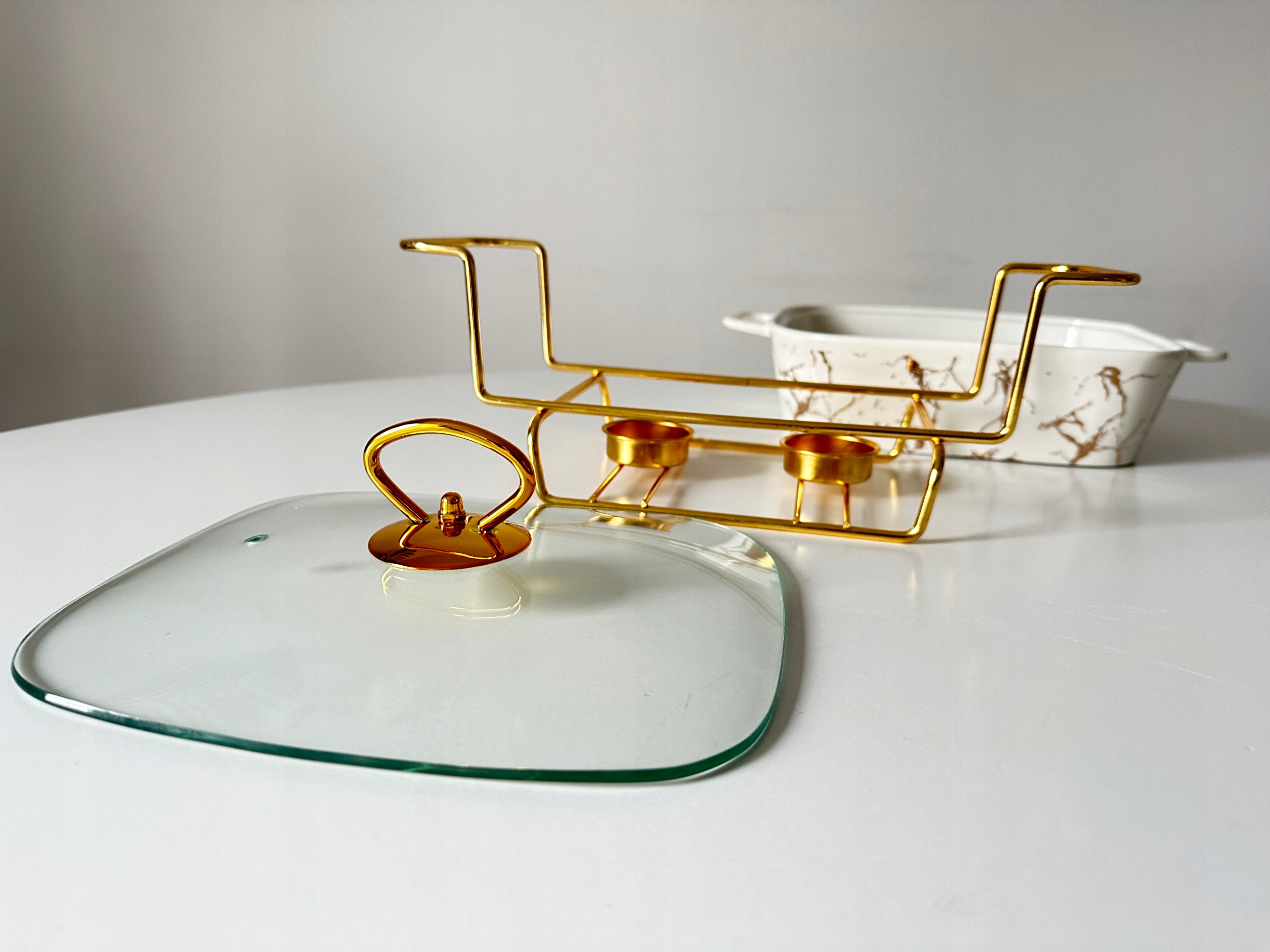 NACZYNIE ŻAROODPORNE CERAMICZNE Z POGRZEWACZEM PROSTOKĄTNE PODGRZEWACZ 1,5L