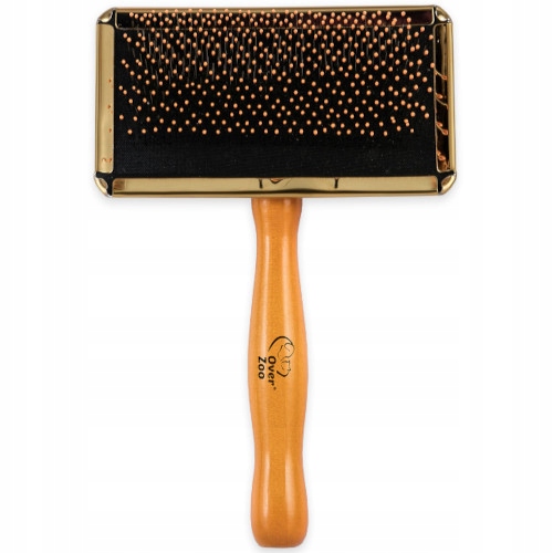 благодаря стали, слегка согнутым иглам, он идеально подходит для расчесывания запутанных волос, запутывания и расчесывания мертвых подшеренга. Резиновая подушка поглощает давление, благодаря тому, что кисть лучше сочетает волосы и не раздражает кожу животного. Пластиковые шарики на концах игл дополнительно защищают от раздражения кожи. Эргономичная, деревянная ручка облегчает расчесывание.
