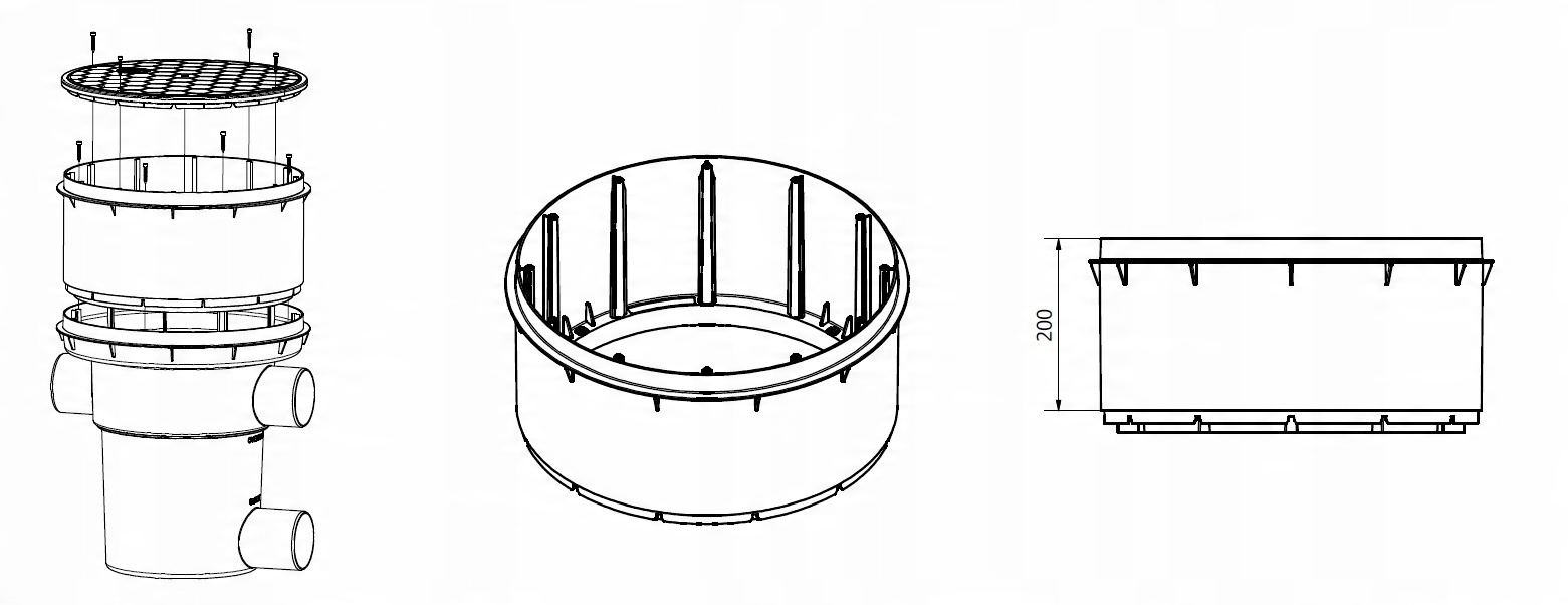 Надстройка D400 H200 AQ представляет собой цилиндрический удлинитель, устанавливаемый на фильтр перелива дождевой воды AQ, резервуары для дождевой воды AQ, септики AQ и установки биологической очистки. Он был изготовлен из полиэтилена высокой плотности PEHD методом пластикового литья. Характеризуется слегка ребристой структурой как в поперечном, так и в продольном направлении. В комплект с надстройкой входят четыре крепежных винта и прокладка, задачей которой является герметизация соединения фильтр-надстройка, бак-надстройка или надстройка-надстройка. Использование надстройки позволяет разместить фильтр или резервуары на большую глубину. Надстройка собирается путем ее установки и последующего вкручивания четырех винтов INOX. Активная высота надстройки 200 мм. Производитель допускает установку максимум трех надстроек на фильтр или люк бака.