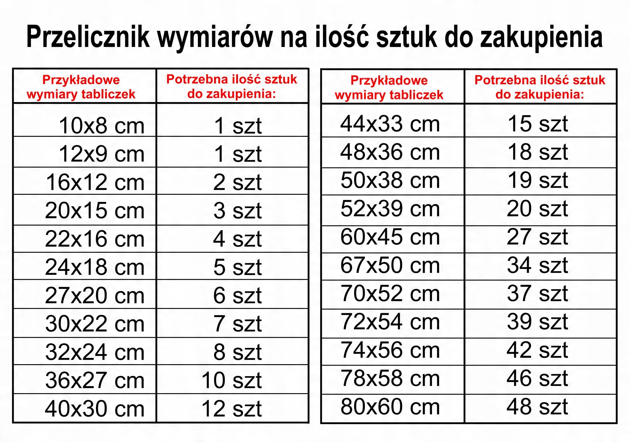 Например, табличка 25х15 = 375 см2, т.е. 4 штуки (тогда цена 4х32 злотых = 128 злотых)