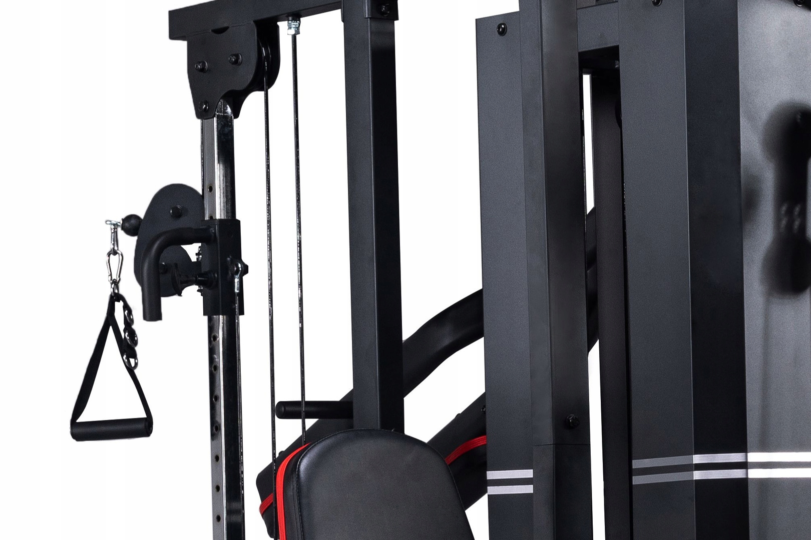 Атлас оснащен 4 подъемниками и имеет дополнительную ленту для нижнего блока, позволяющую вам для тренировки ног!