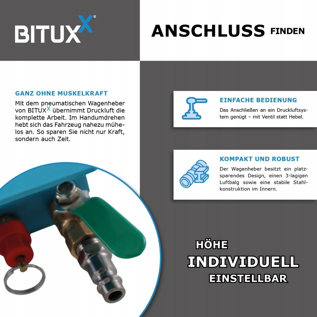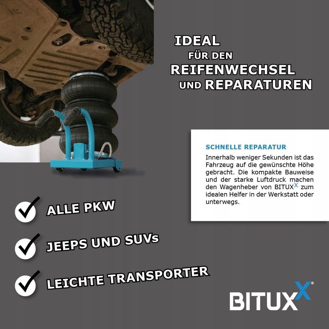 Пневматический подъемник Bituxx грузоподъемностью 3 тонны - профессиональное устройство, предназначенное для: