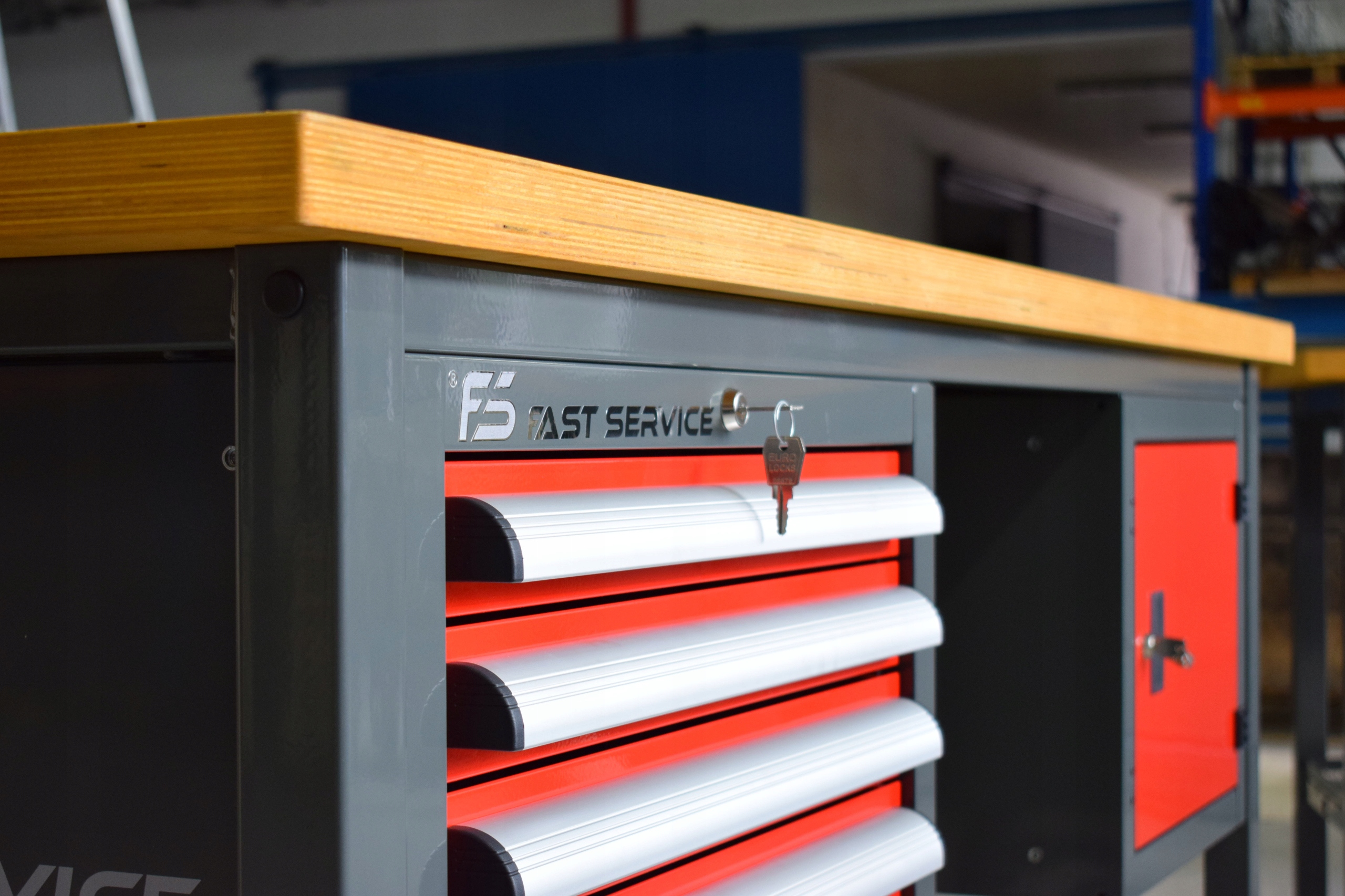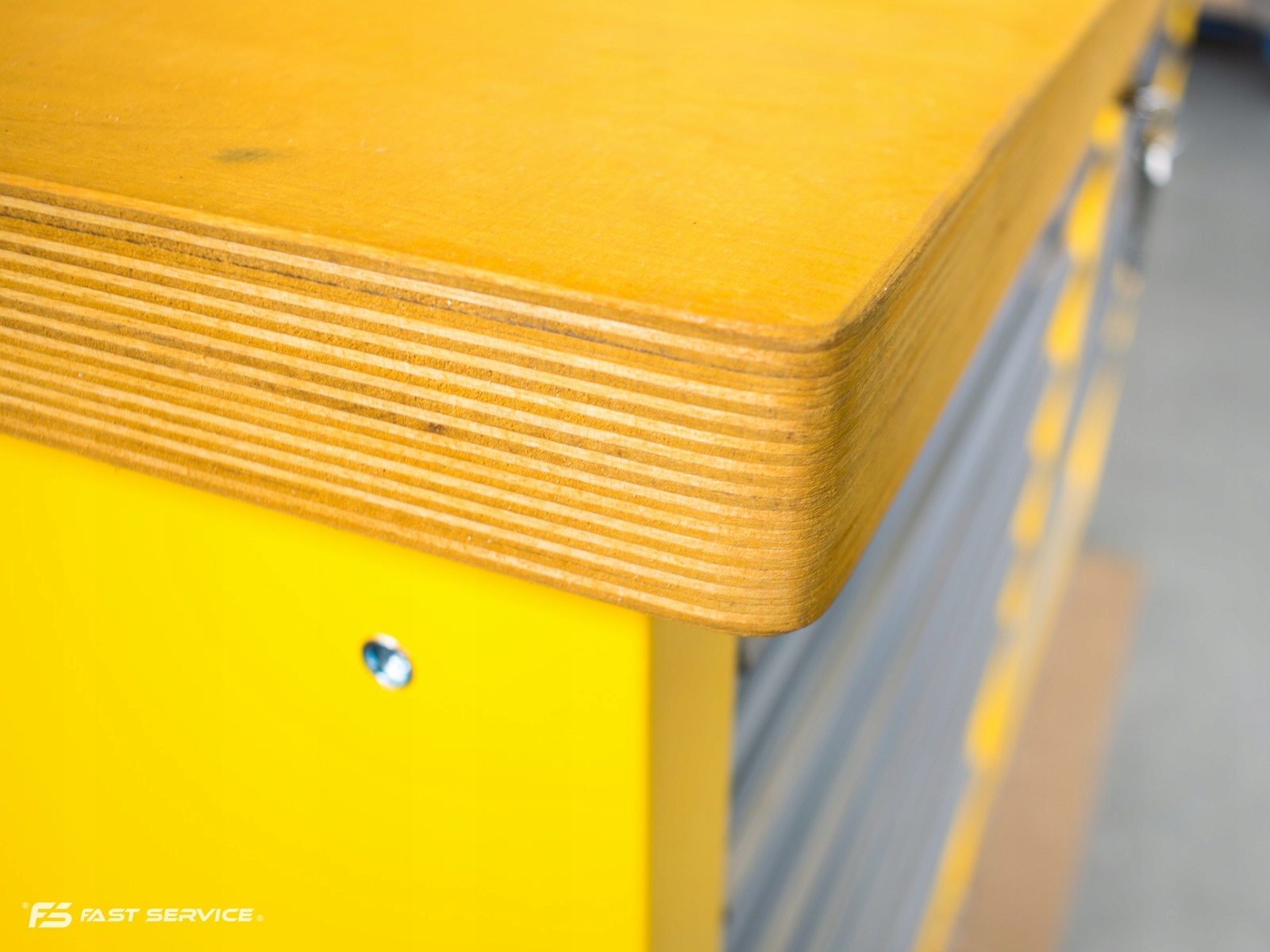 Столешница изготовлена из многослойной пропитанной фанеры твердых пород толщиной 40 мм. Прочная столешница для тяжелой работы, особенно в тисках. Вес самой столешницы у столов шириной 1400 мм - около 20 кг, у столов шириной около 2000 мм - более 30 кг
