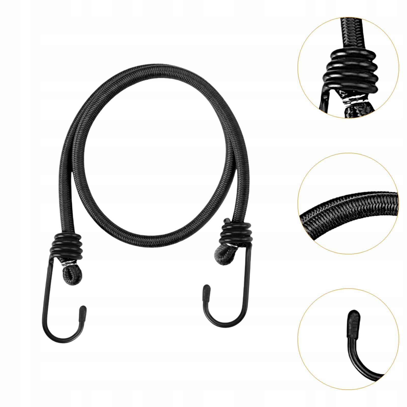 [С крючками]: банджи-шнур оснащен усиленными металлическими крючками на обоих концах, оснащенными несколькими усиливающими кольцами для надежного крепления; Эти крючки обеспечивают надежную фиксацию без деформации со временем.