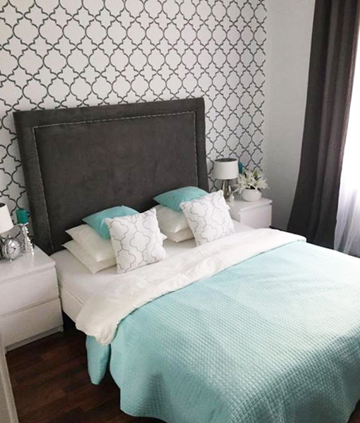 - Дизайн трафарета подготовлен таким образом, чтобы рисунок мог повторяться на всей поверхности стены.