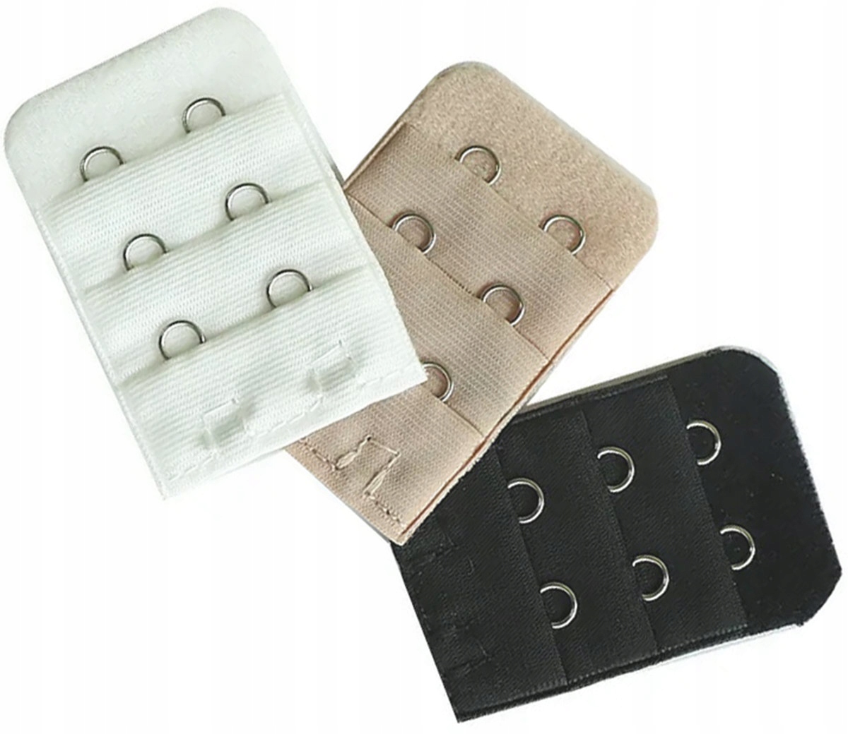 Набор из трех удлинителей бюстгальтера для увеличения его окружности. Чрезвычайно практичный аксессуар, позволяющий расширить застежку на два ряда, не мешая при этом самому бюстгальтеру. В комплект входят удлинители 3 цветов (белый, черный и телесный), что позволяет легко подобрать их под цвет вашего бюстгальтера. Вам больше не придется менять малый бюстгальтер на новый.