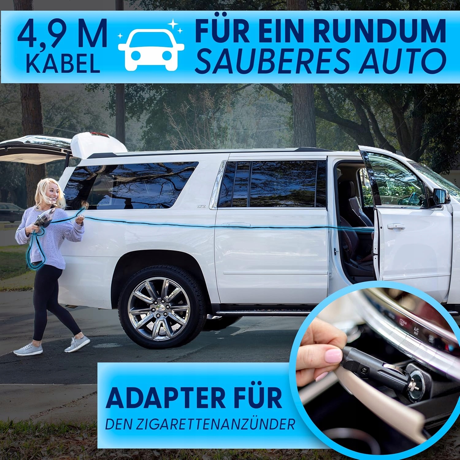 Надежная конструкция: удобный автомобильный пылесос со сплющенным дном и очень длинным кабелем (4,9 метра)