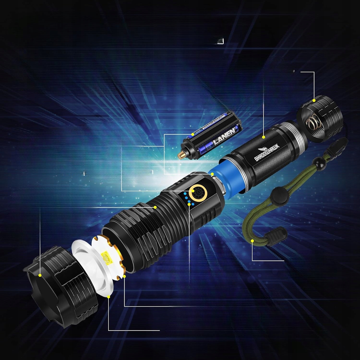 Сверхмощный светодиодный фонарик Shadowhawk, перезаряжаемый фонарик 20000 люмен, тактическая лампа XHP70.2, фонарик IP67, водонепроницаемый, 5 режимов для кемпинга, походов в экстренных ситуациях (с [классом энергопотребления A+++]