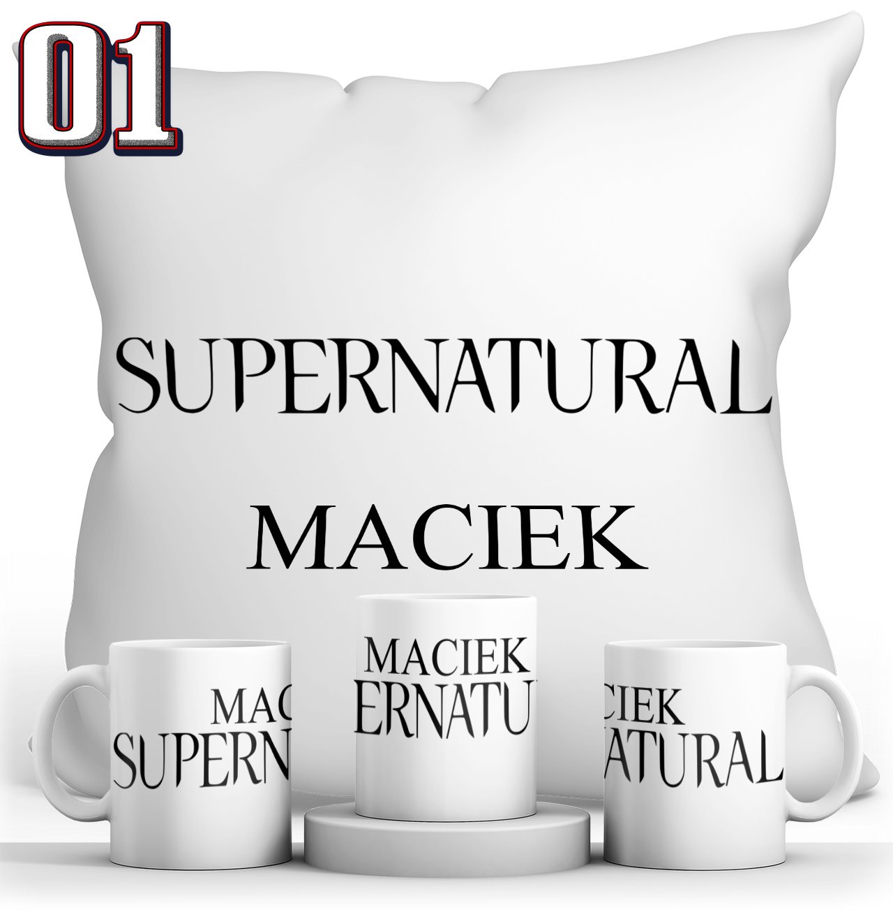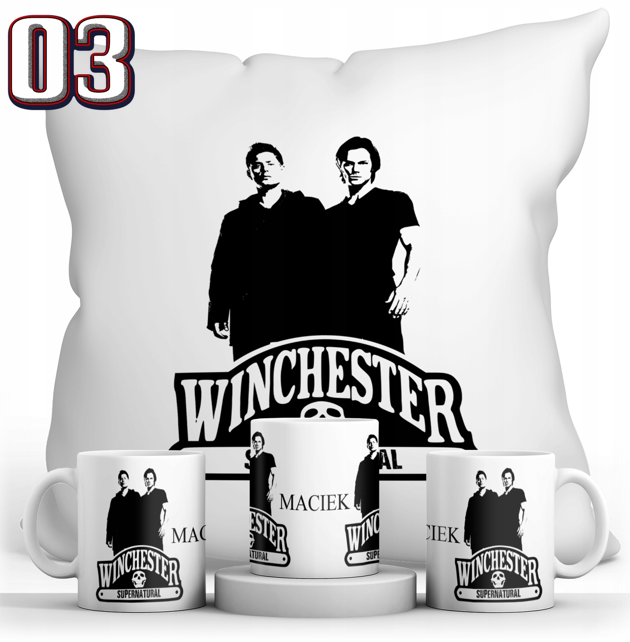 Набор Подушка + Белая кружка - SUPERNATURAL + возможность нанесения имени или другого текста на товар, включенный в цену.