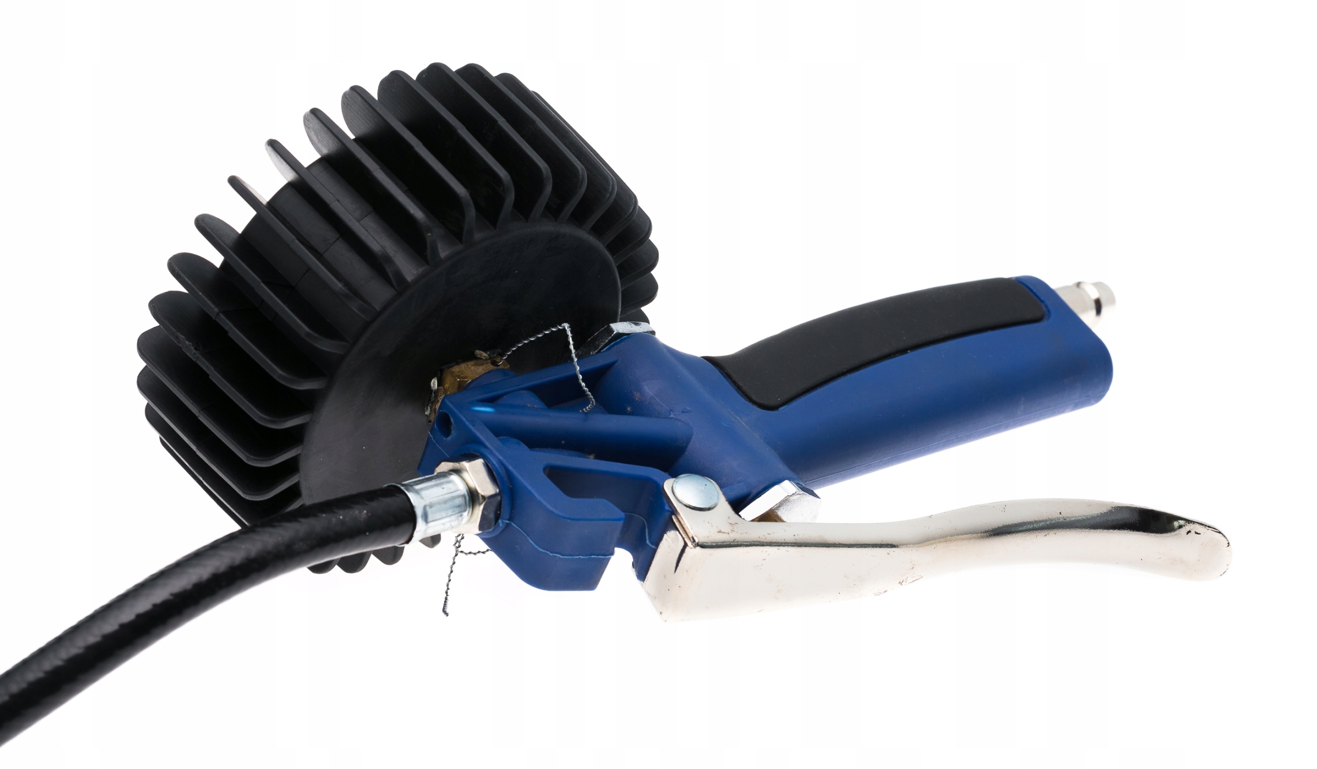 Шланг длиной 100 см оснащен стандартным наконечником для большинства клапанов. Благодаря стандартному наконечнику наше ружье становится универсальным и универсальным. Просто нажмите на спусковой крючок наконечника и примените его к клапану. Возможна работа от одного человека.