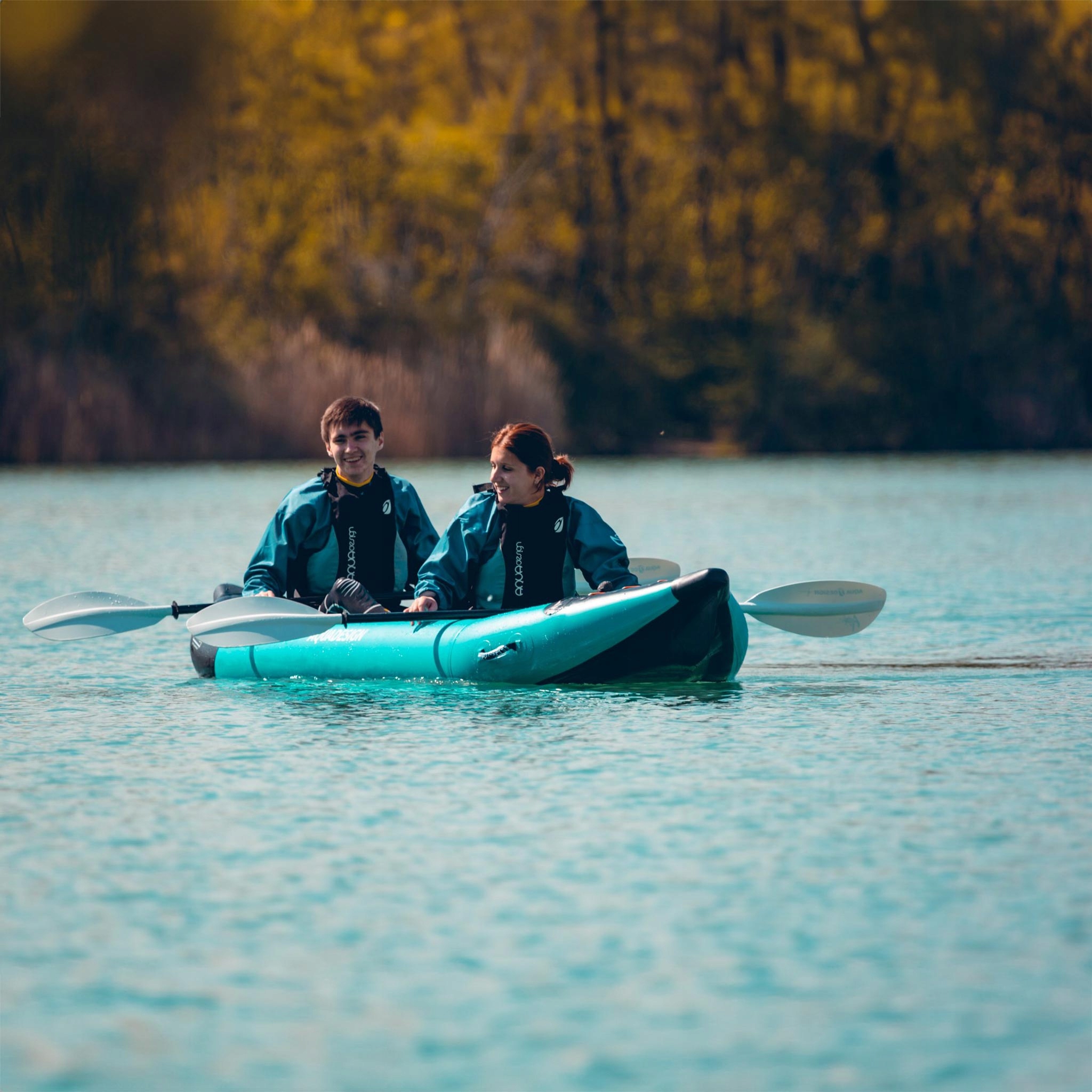 Aquadesign Koloa 360 — это надувной двухместный каяк внушительной длины 360 см, обеспечивающий комфортное размещение двух человек. Его внешняя ширина 100 см и внутренняя ширина 46 см при максимальной нагрузке 215 кг делают его идеальным каяком для многих водных видов спорта. Необычайная стабильность и жесткость Koloa 360 являются результатом инновационного пола, изготовленного по технологии Dropstitch, позволяющей надувать давление до 10 фунтов на квадратный дюйм. Эта особенность позволяет каяку сохранять отличную жесткость даже в более сложных условиях.