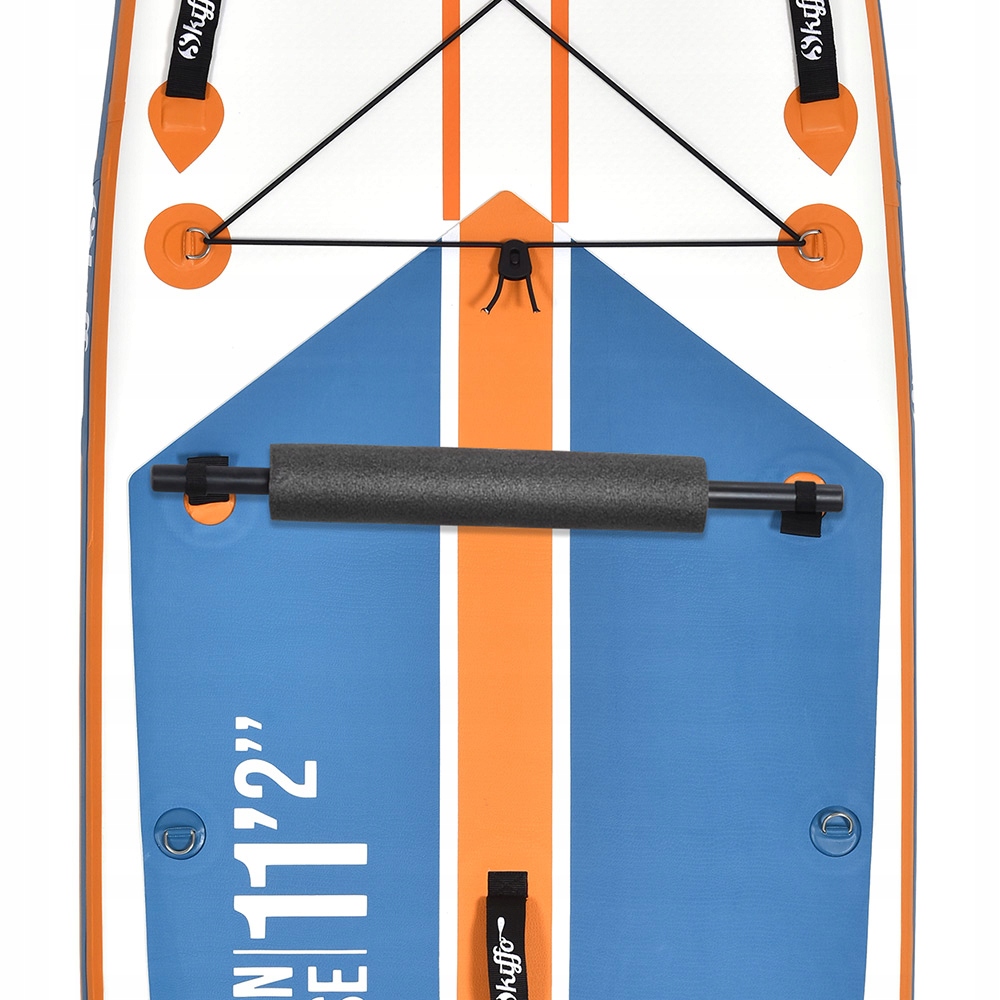 Сапборд Skiffo Sun Cruise 11.2 из новой коллекции 2021 года - интересная, очень жесткая доска, устойчивая и маневренная, доска для общего пользования. использования, имеет специальную опору для ног - удобен для плавания сидя на кресле для каяка. Версия XL отличается очень высокой плавучестью и максимальным весом пользователя до 145 кг, поэтому мы можем плавать на доске с партнером или с нами. ребенок. Все это с очень хорошим, образцовым эффектом, просто сделано. Четыре ручки для транспортировки облегчают переноску и плавание на животе по волне.