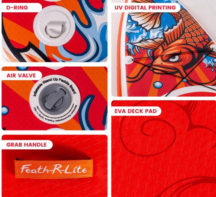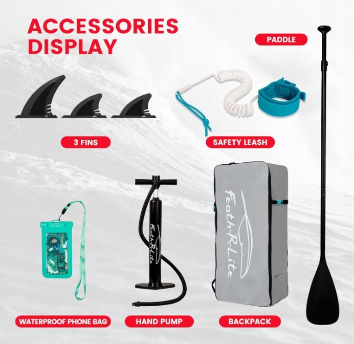 - 【Полный набор аксессуаров для паддла оснащен всеми необходимыми аксессуарами, включая плавники, насос, безопасную веревку, рюкзаки, регулируемая длина алюминиевых лодок и водонепроницаемые телефоны