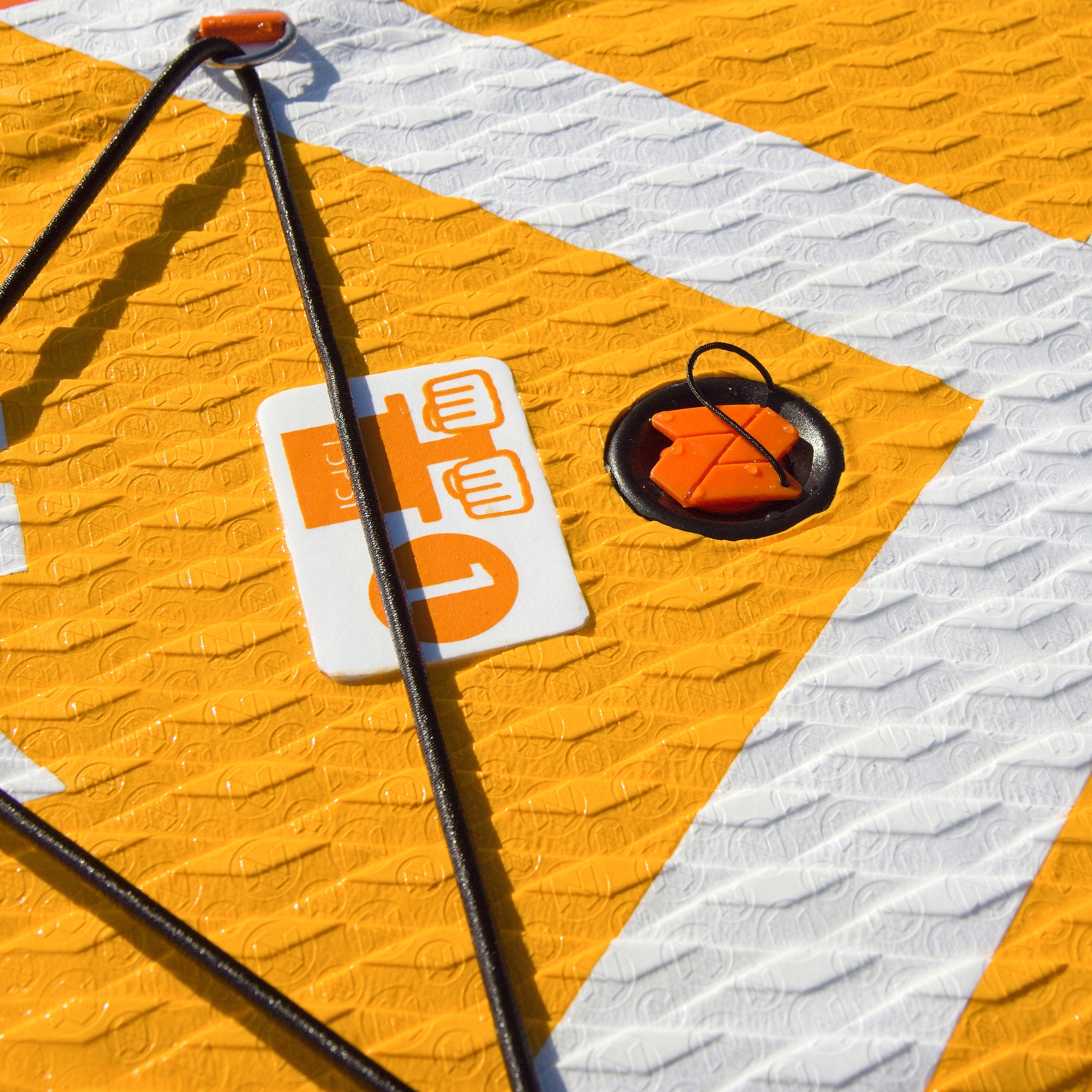 В этой модели используется двухкамерная конструкция с тремя плавниками – одним более длинным, выдвижным и двумя постоянно прикрепленными гибкими плавниками. Благодаря им доска очень устойчива и удерживает плавник. Конечно, двухкамерная структура доски делает доску более безопасной и жесткой по сравнению с однокамерной. Дека доски покрыта комфортной пеной EVA с противоскользящими и амортизирующими свойствами. Дополнительно имеется четыре металла. D-образные кольца на палубе для крепления сиденья для каяка, которые можно приобрести отдельно.
