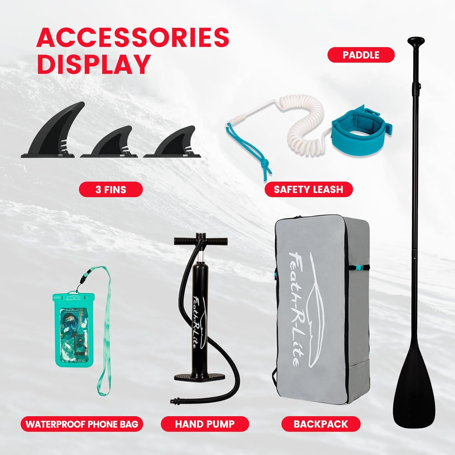 ⚡️В полный комплект аксессуаров для доски для серфинга SUP входят все необходимые аксессуары, включая ласты, насос, страховочный трос, рюкзаки, алюминиевые весла регулируемой длины и водонепроницаемые сумки для телефона.