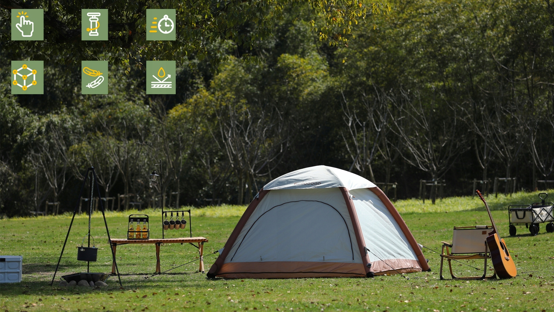 Вам не придется утруждать себя установкой палатки после тяжелого путешествия – нажмите кнопку и используйте это время для отдыха!